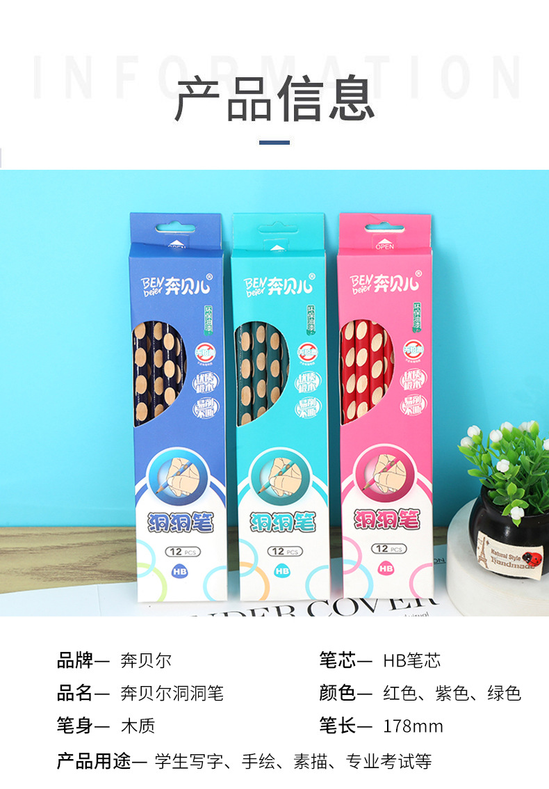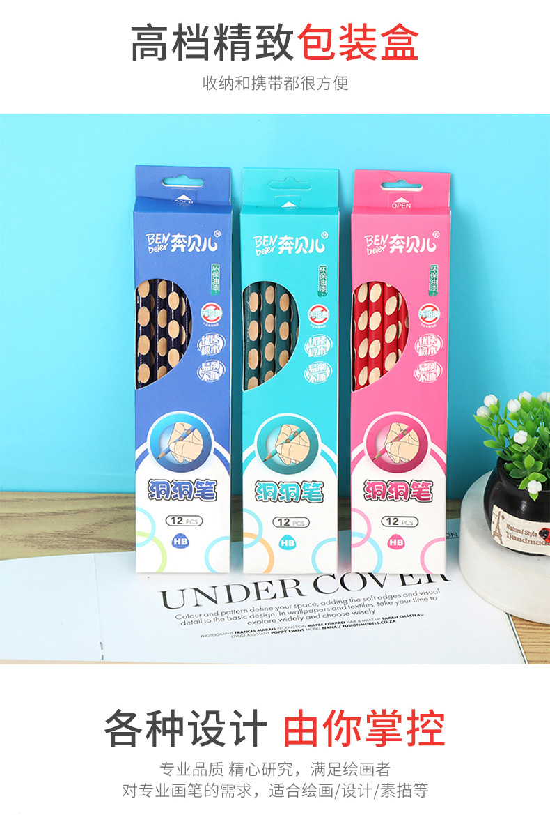 도매 박스 포장 구멍펜 초등학생 어린이 쓰기 자세 교정 만화 삼각형 초보자 연습용 필기 hb 연필