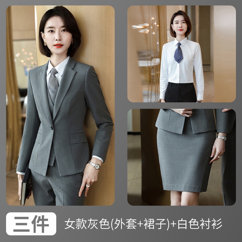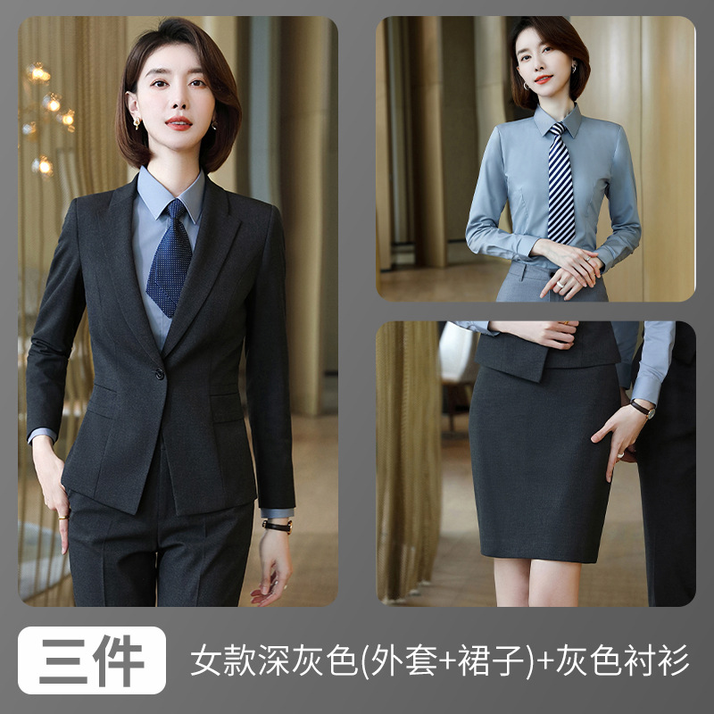 • 여성용 다크 그레이 (재킷 + 스커트) + 회색 셔츠
