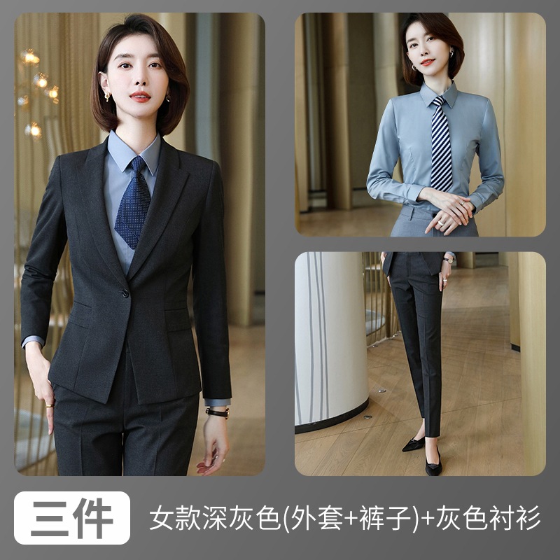 • 여성용 다크 그레이 (재킷 + 바지) + 회색 셔츠