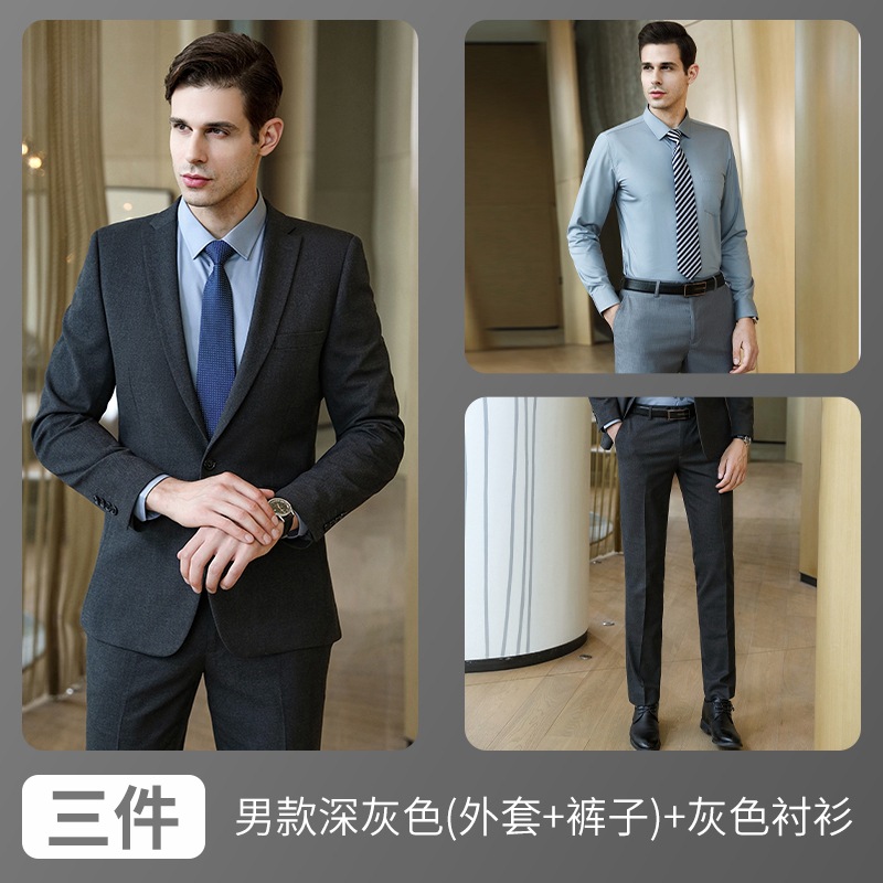 • 남성 다크 그레이 (재킷 + 바지) + 회색 셔츠