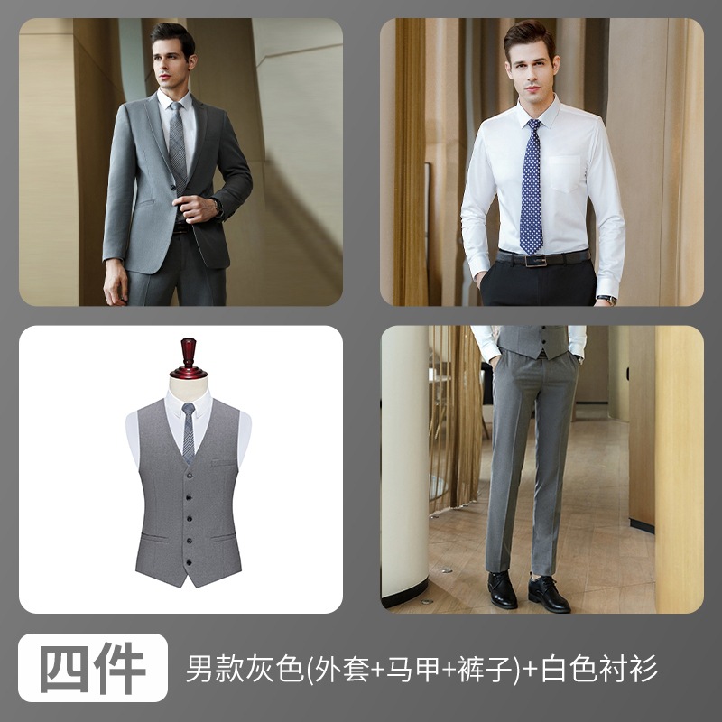 • 남성 다크 그레이 (재킷 + 조끼 + 바지) + 회색 셔츠