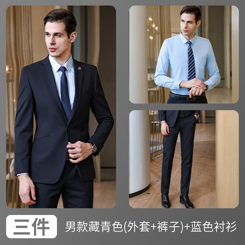 • 남성 네이비 (재킷 + 바지) + 블루 셔츠