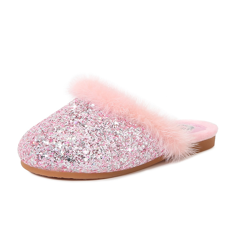여아용 겨울용 털 슬리퍼, 패셔너블하고 귀여운 어린이 공주님 면 슬리퍼, 아이샤 여아용 홈 슬리퍼, 따뜻한 유아용 신발스토어 가기