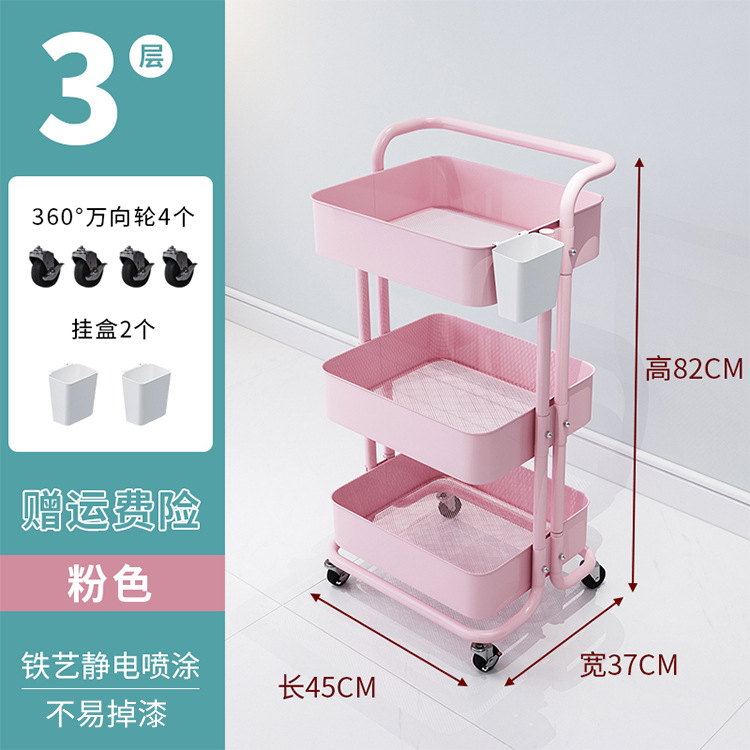 주방 다층 보관 카트 금속 바퀴 달린 스토리지 랙 이동식 다기능 스토리지 랙 아기 제품 트롤리
