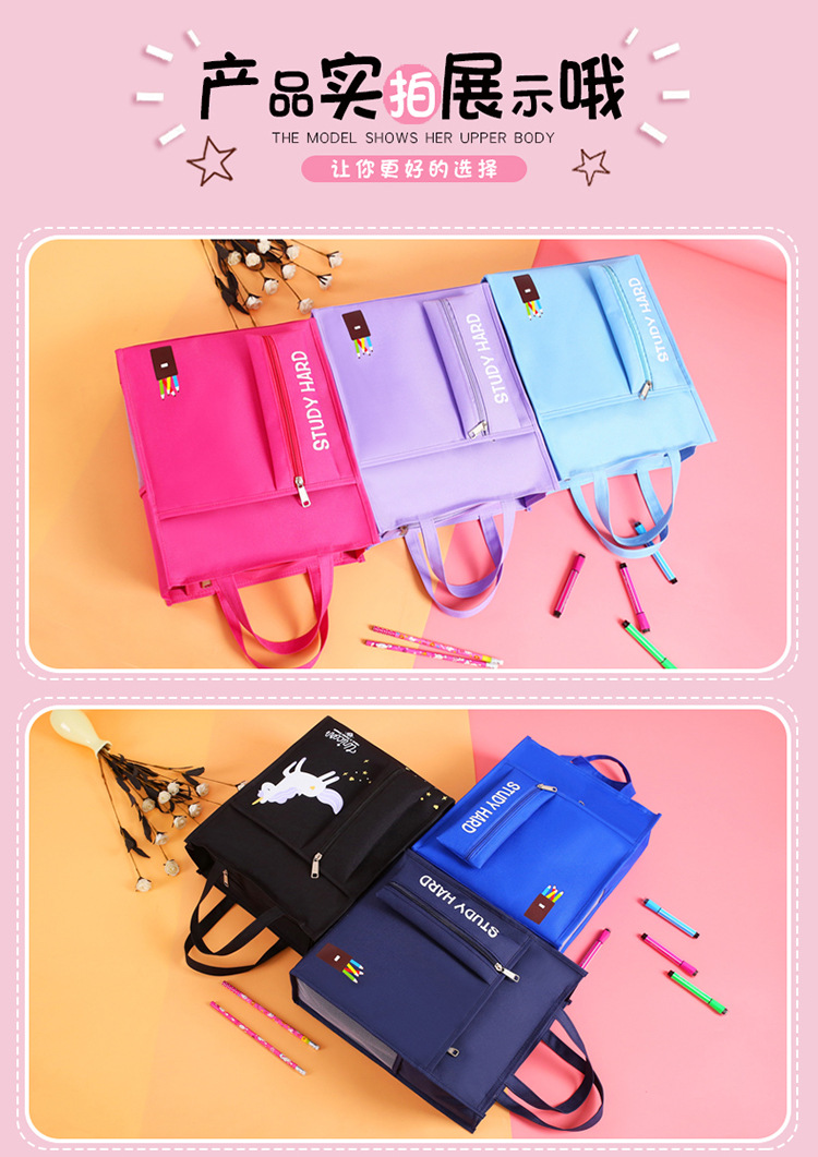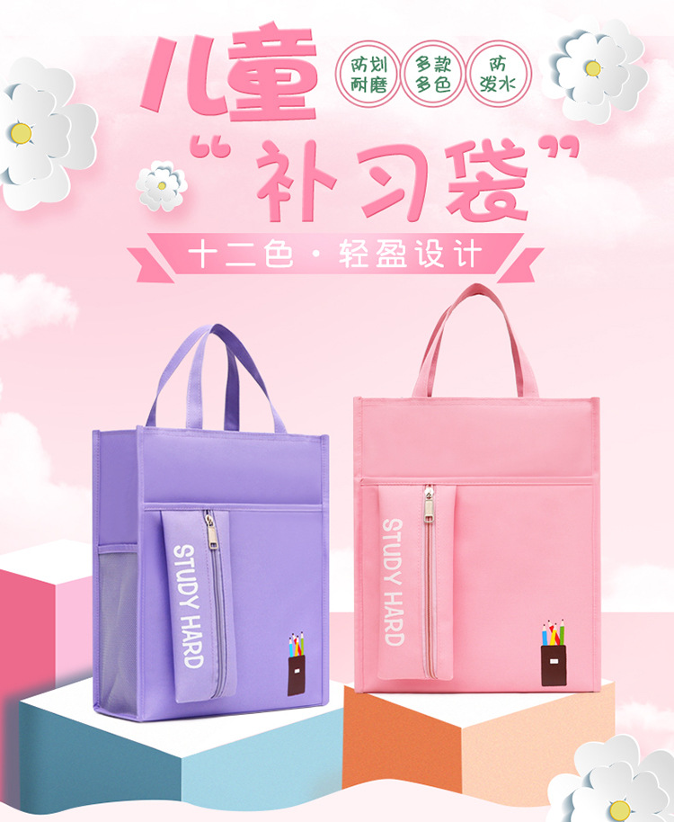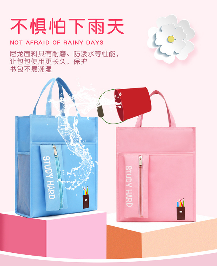 手提袋学生大容量帆布补习袋中小学生韩版防水手提包补课书包拎包