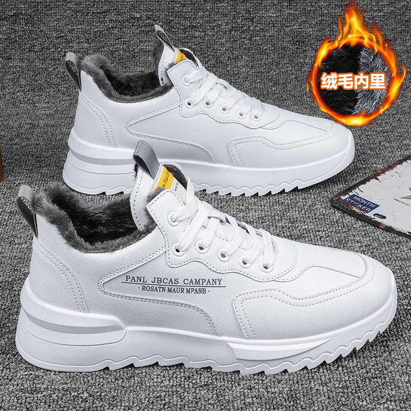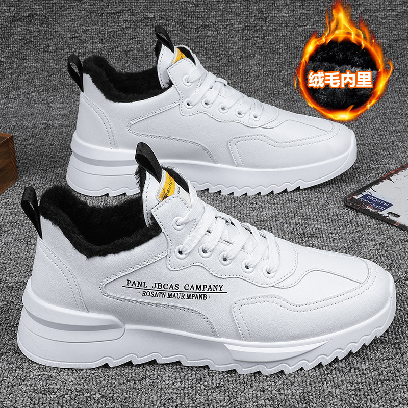 가을과 겨울 패션 운동화 캐주얼 남자의 운동화 가죽 탑 야외 남성 신발 보드 신발 기모 트렌디 한 흰색 신발
