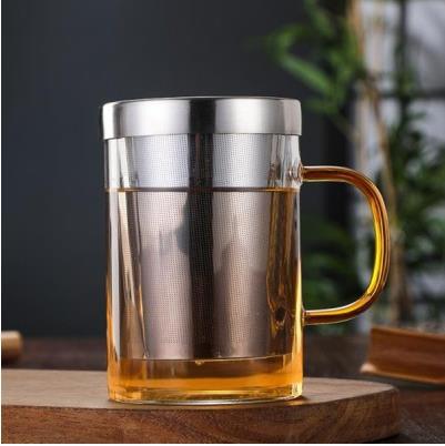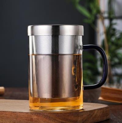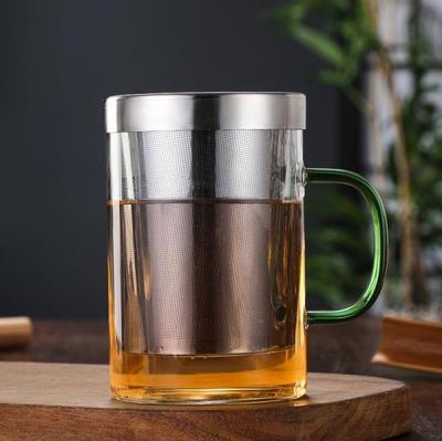 스테인레스 스틸 라이너 티컵 컬러 핸들 고 붕규산 유리 사무실 컵 대용량 필터 티컵 포함
