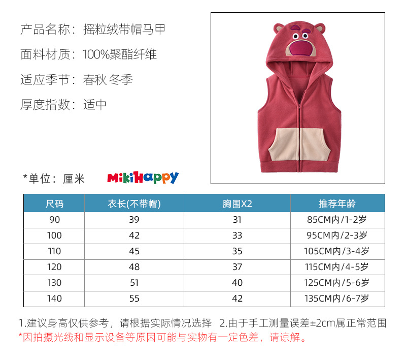 어린이 양털 조끼 가을과 겨울 소년과 소녀 후드 조끼 지퍼 조끼 아기 따뜻한 만화 아동복스토어 가기