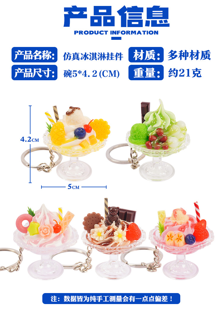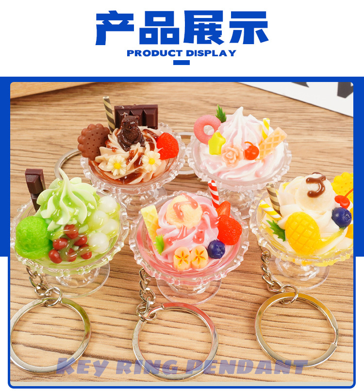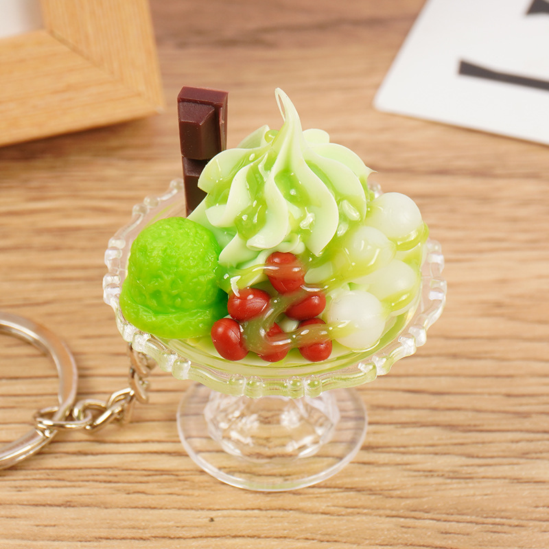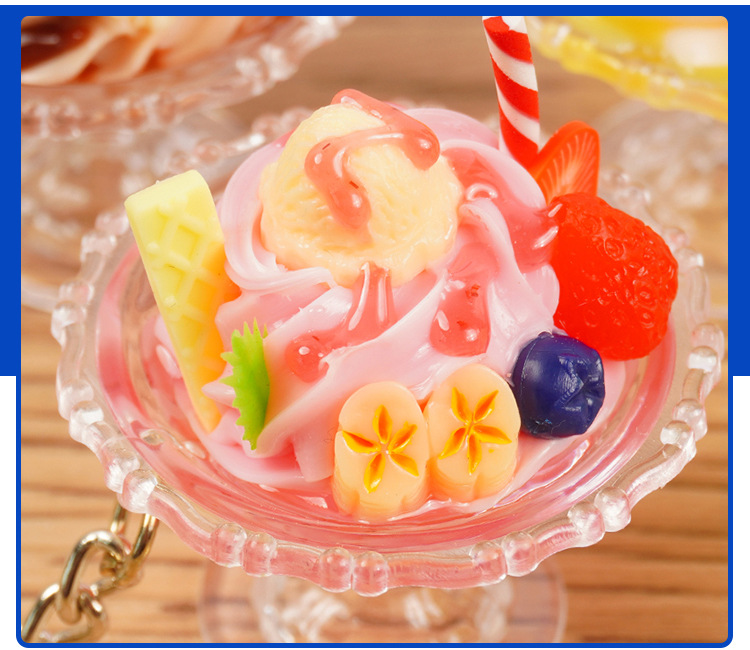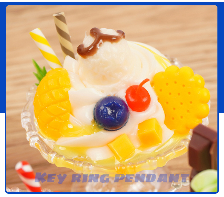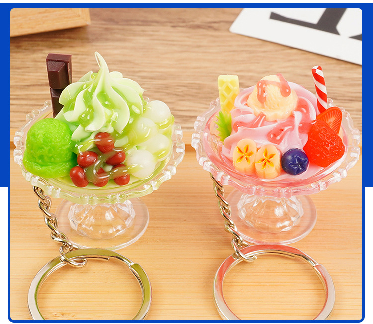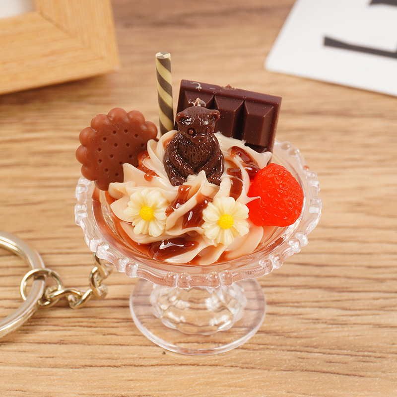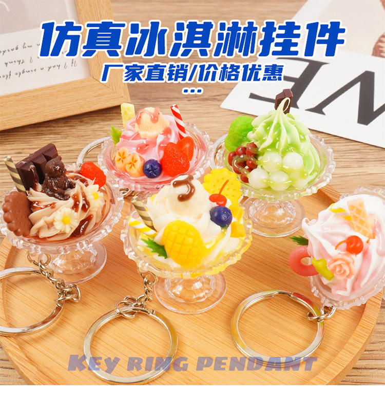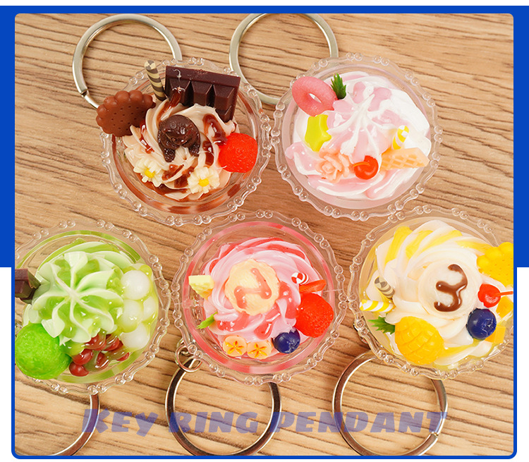 귀여운 모조 아이스크림 키 체인 재미 손으로 만든 음식 놀이 아이스 컵 펜던트 인형 기계 학생 커플 가방 매달려 장식품