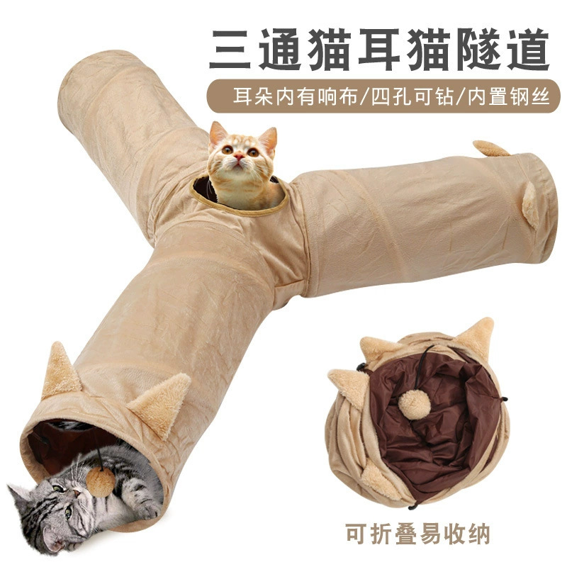 애완 동물 용품 아마존 새로운 고양이 귀 직선 접이식 고양이 터널 셀프 헤이 링 종이 고양이 터널 장난감스토어 가기