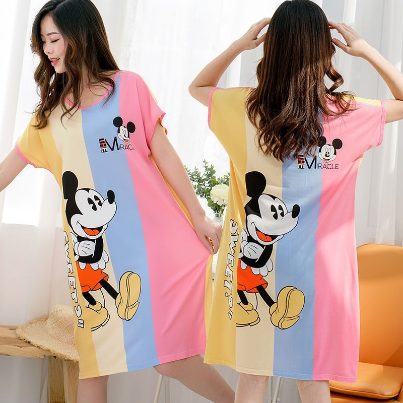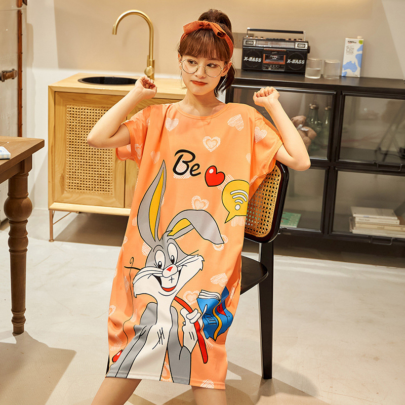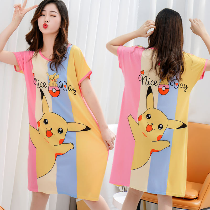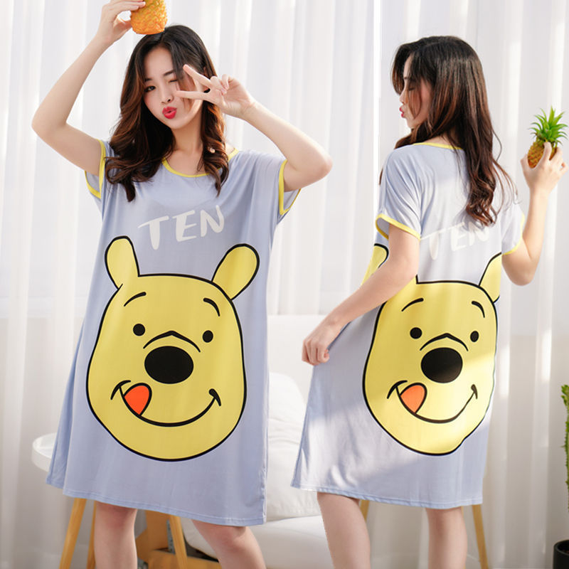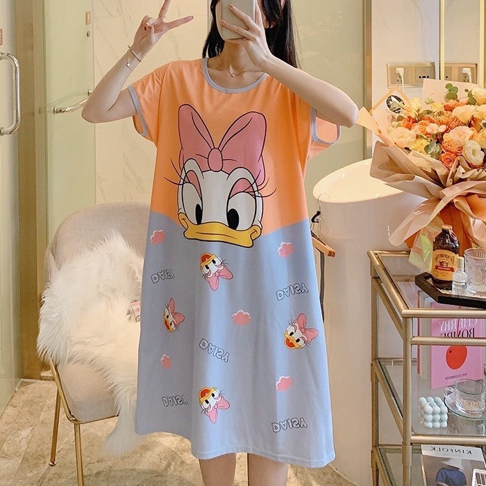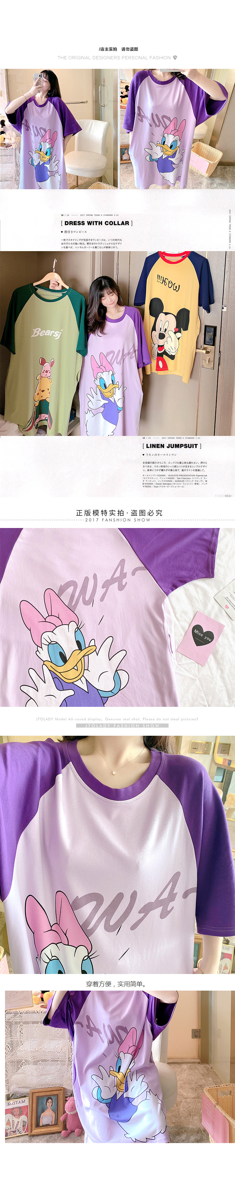도매 새로운 여름 느슨한 플러스 사이즈 달콤한 귀여운 만화 짧은 소매 중간 길이 소녀는 짧은 소매 잠옷을 입을 수 있습니다스토어 가기