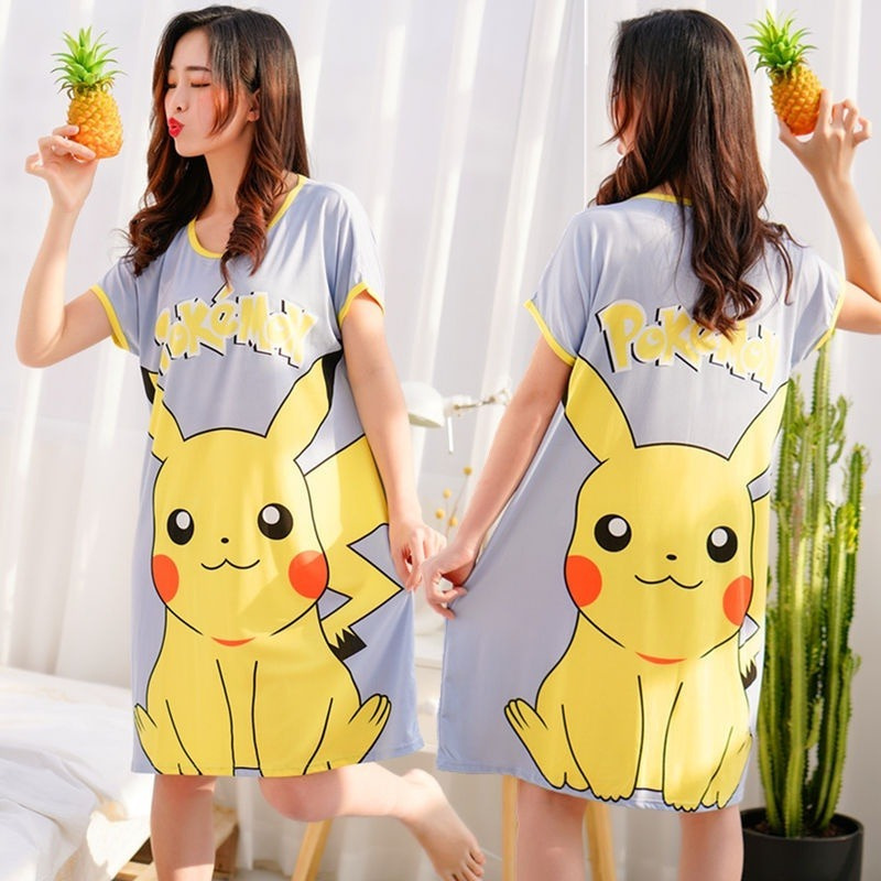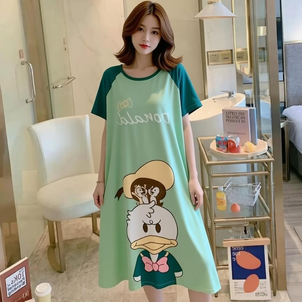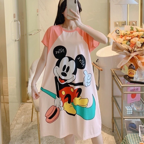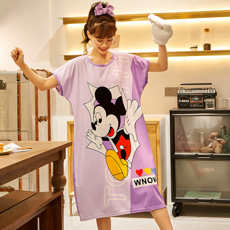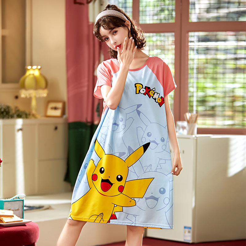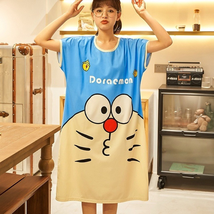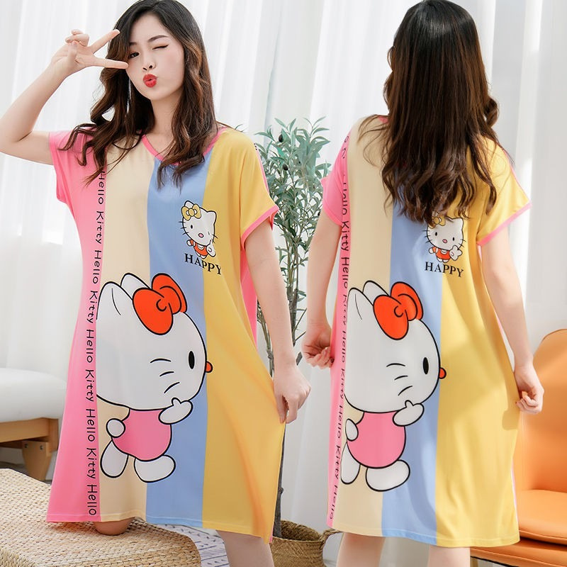 도매 새로운 여름 느슨한 플러스 사이즈 달콤한 귀여운 만화 짧은 소매 중간 길이 소녀는 짧은 소매 잠옷을 입을 수 있습니다스토어 가기