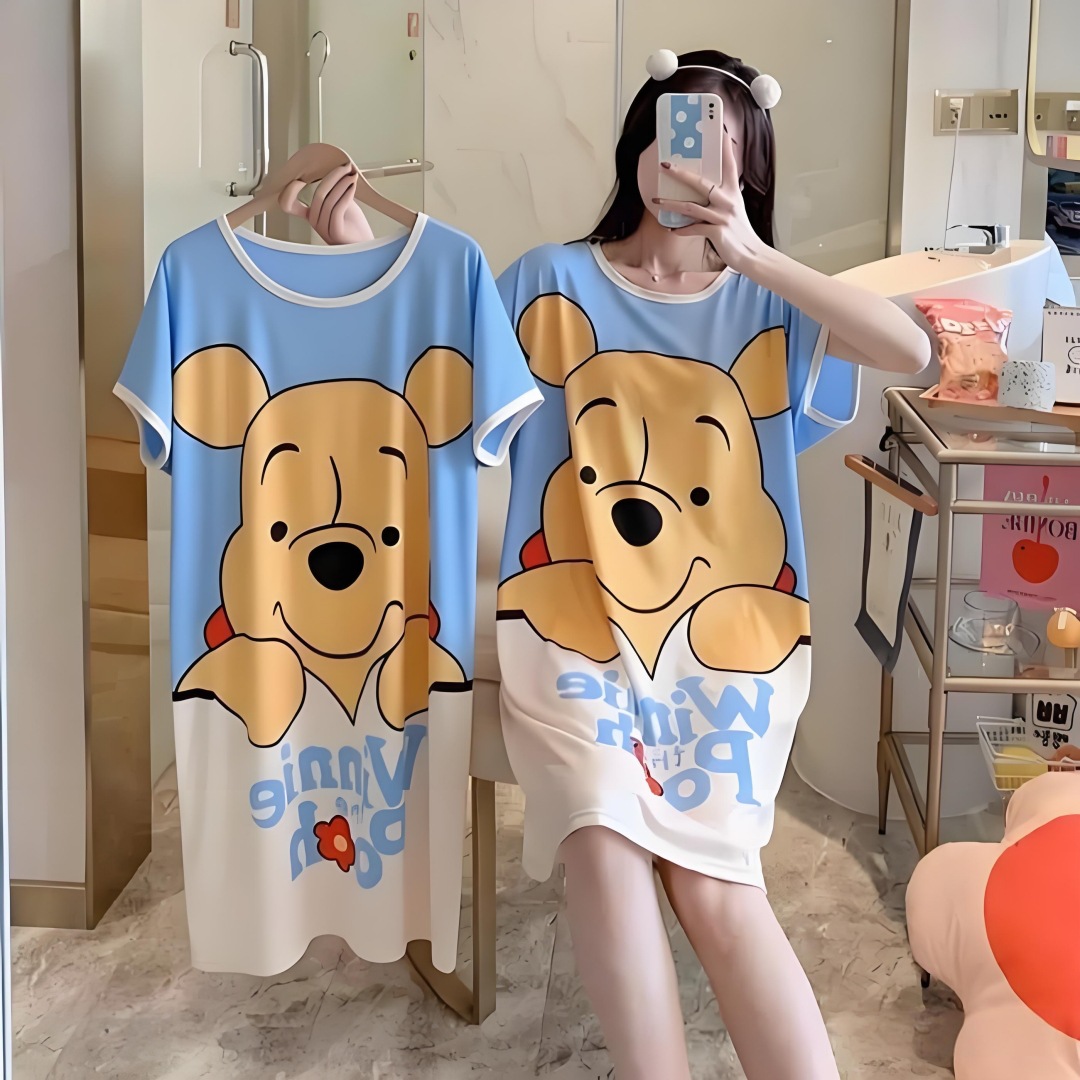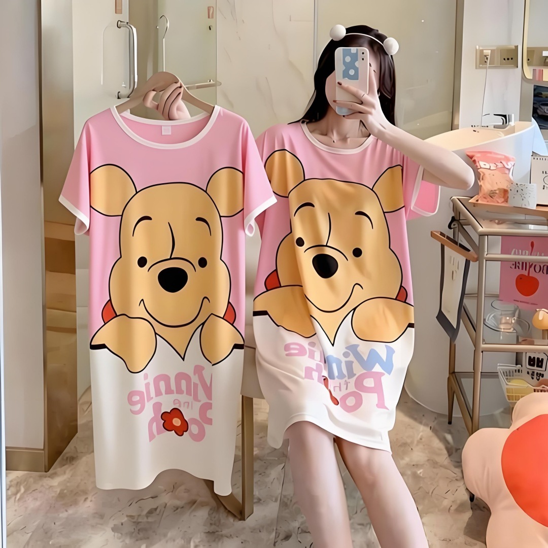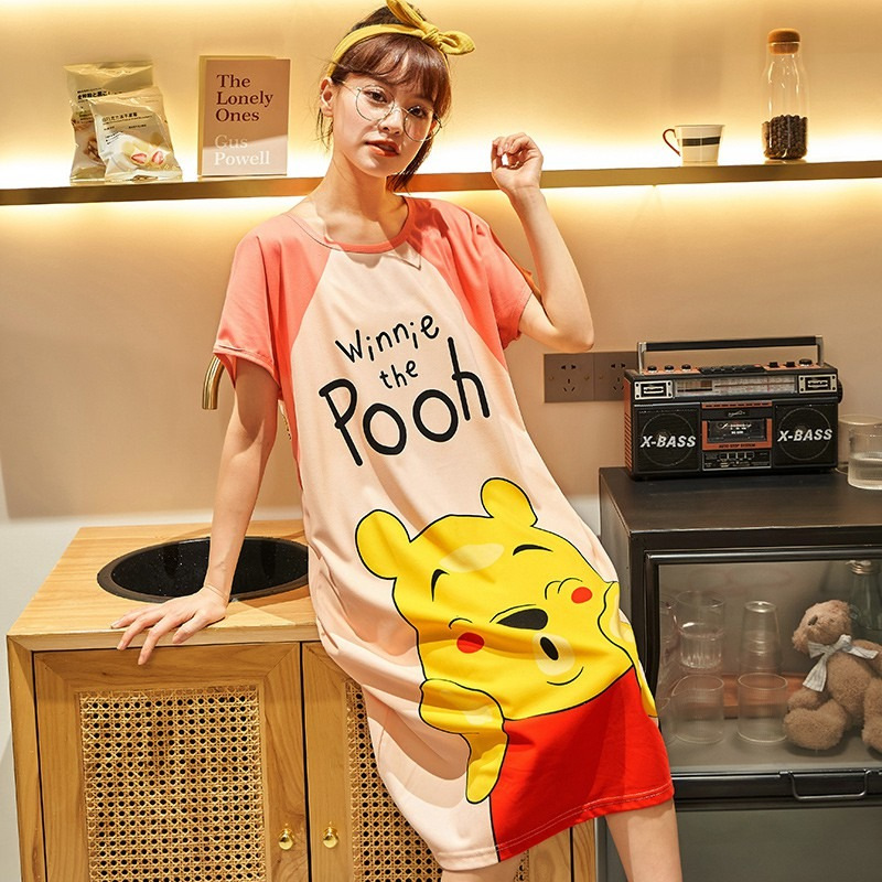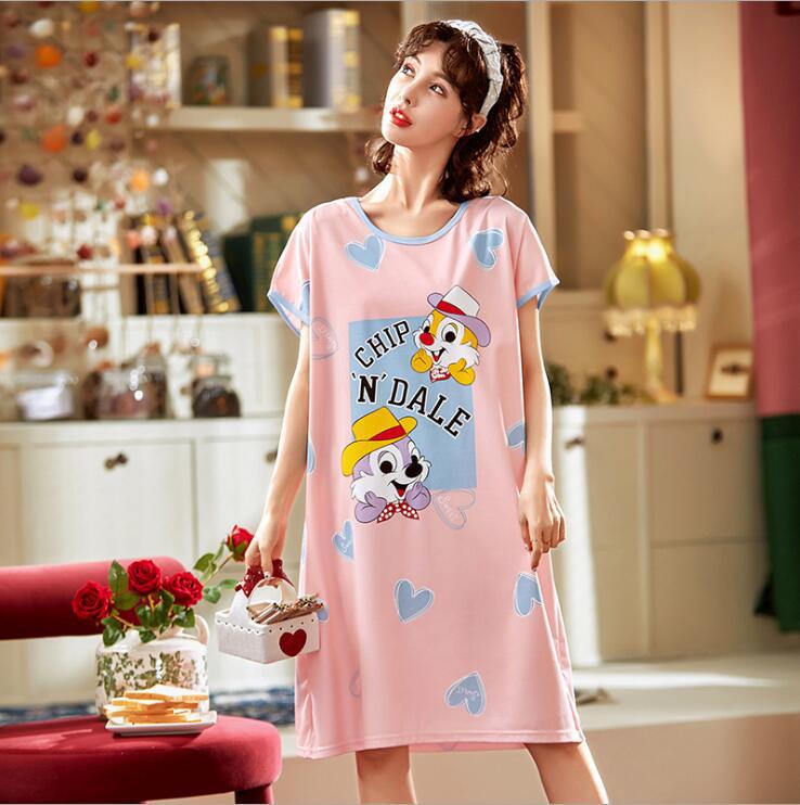 도매 새로운 여름 느슨한 플러스 사이즈 달콤한 귀여운 만화 짧은 소매 중간 길이 소녀는 짧은 소매 잠옷을 입을 수 있습니다