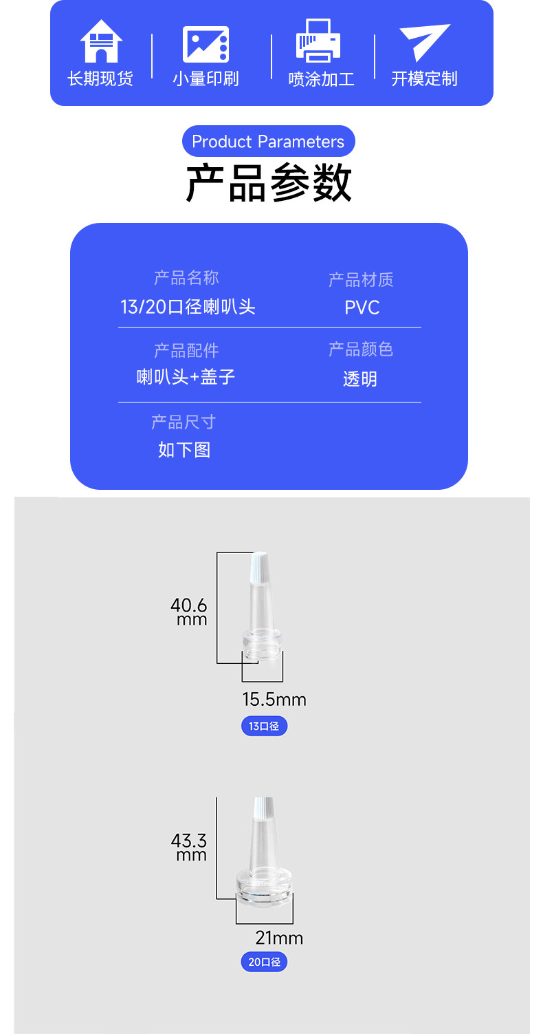 13 치아 투명 혼 헤드 병 동결 건조 분말 20 숲 병 매칭 PVC 호스 전환기 점 적기 헤드 재고스토어 가기