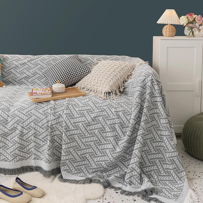[크로스 보더 도매] 북유럽 솔리드 컬러 사계절 면 담요 스타일 소파 타올 패션 점심 담요 간단한 쿠션스토어 가기