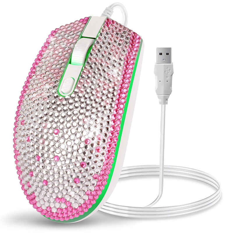 크리스탈 라인 석 마우스 컴퓨터 액세서리 전자 선물 화려한 빛나는 다이아몬드 유선 마우스