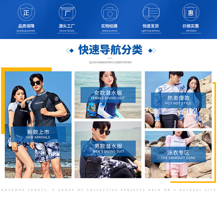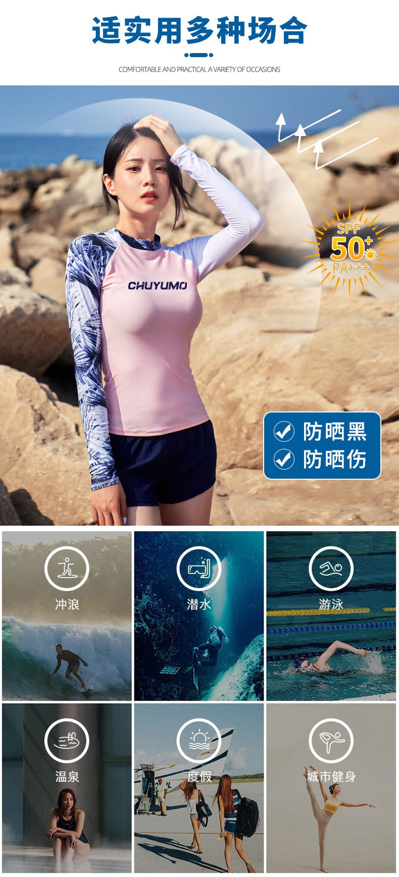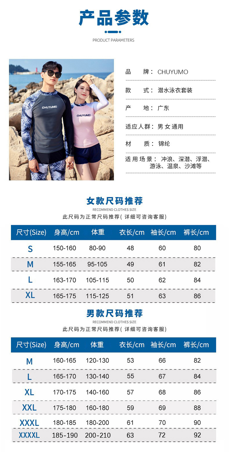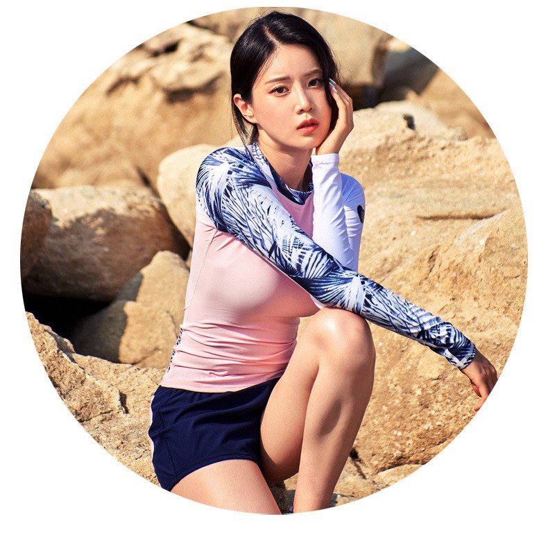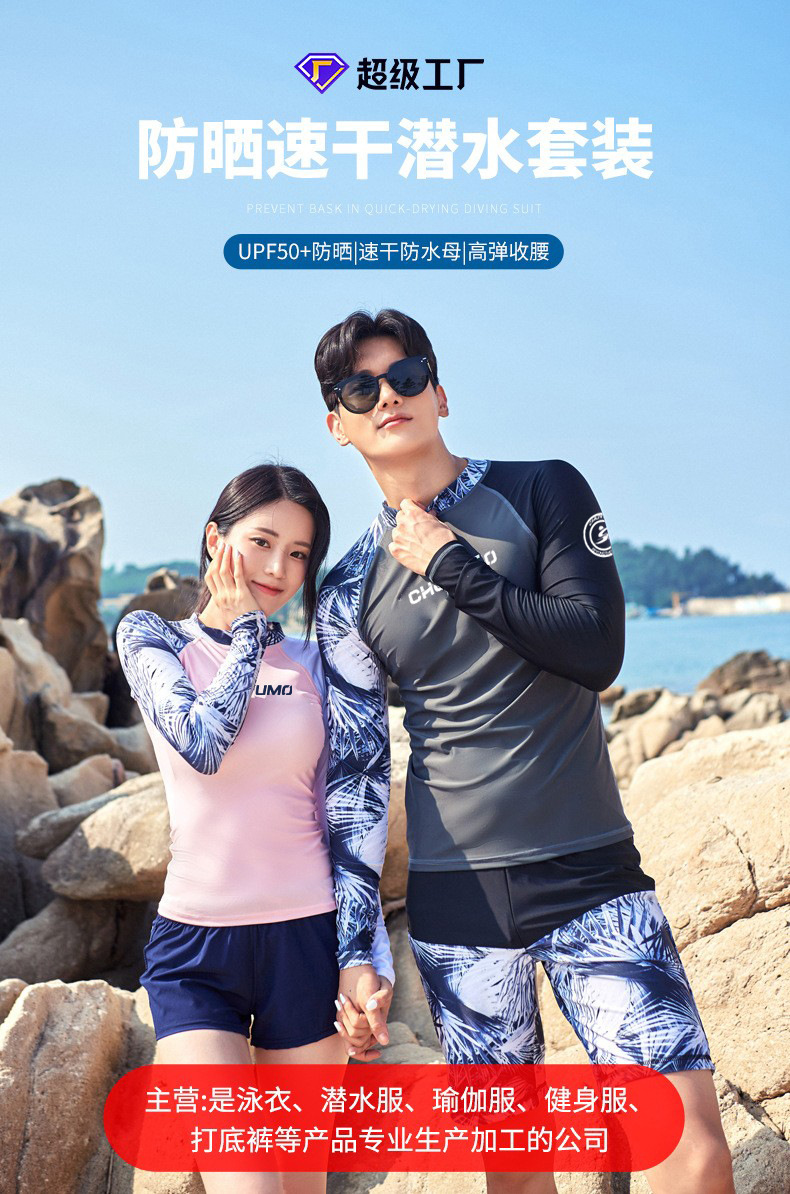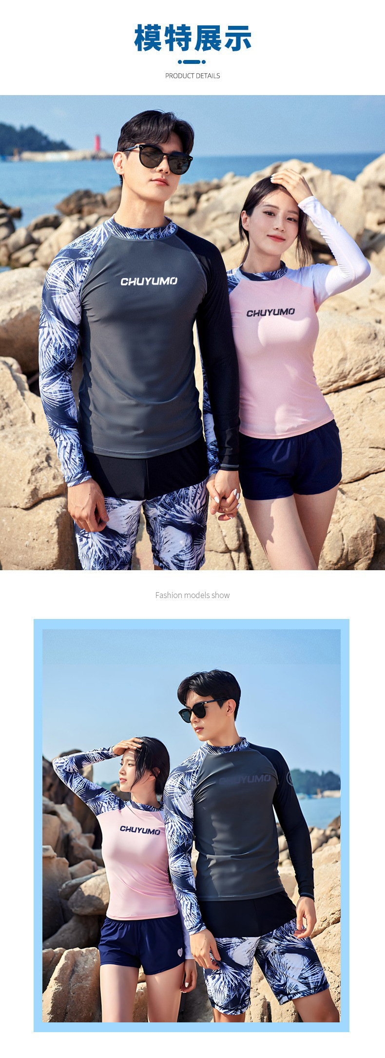 다이빙 슈트 커플 세트 남녀 수영복 긴팔 프린트 라운드넥 분리형 자외선 차단 스포츠 수영복 제조사 직판스토어 가기