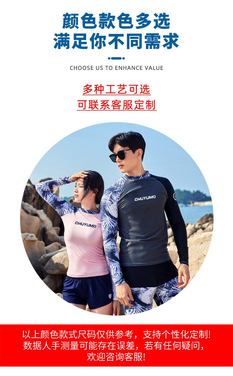 다이빙 슈트 커플 세트 남녀 수영복 긴팔 프린트 라운드넥 분리형 자외선 차단 스포츠 수영복 제조사 직판