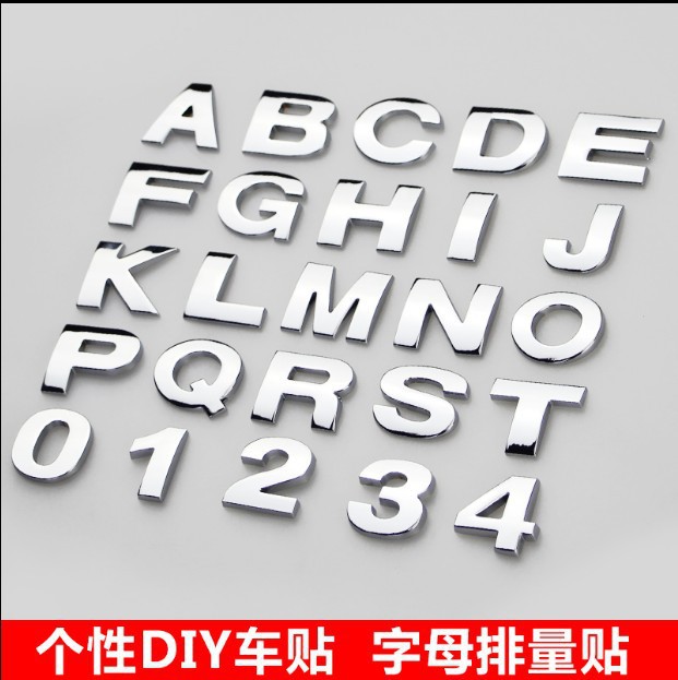 자동차 3D 문자 자동차 스티커 영어 문자 자동차 로고 DIY 영숫자 금속 자동차 바디 스티커 단어 로고 꼬리 로고 실버