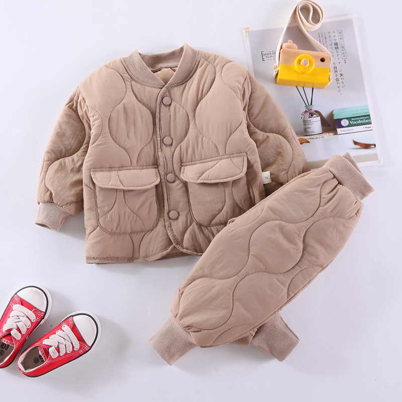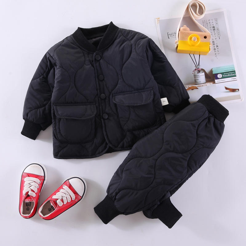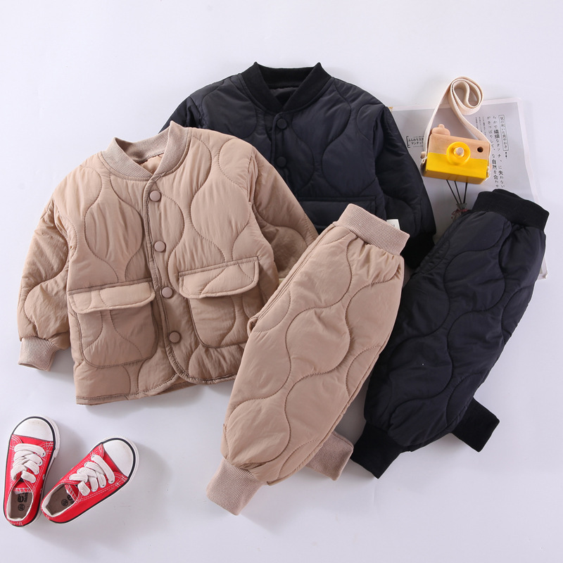 남자의 아기 겨울 새로운 캐주얼 따뜻한 단색 누비면 세트 남자의 어린이 패션 패딩 머리카락의 세대를 세트스토어 가기