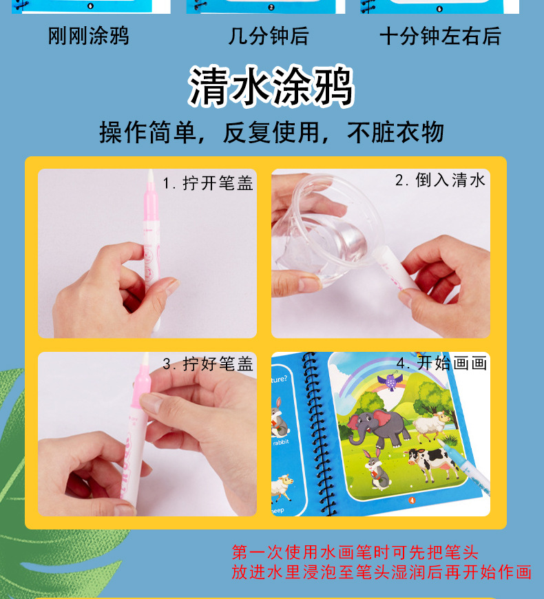 낙서용 수채화 교육용 수제 그림책 어린이 마법 물화 그림책 색칠 DIY 아기 유치원 그림판스토어 가기