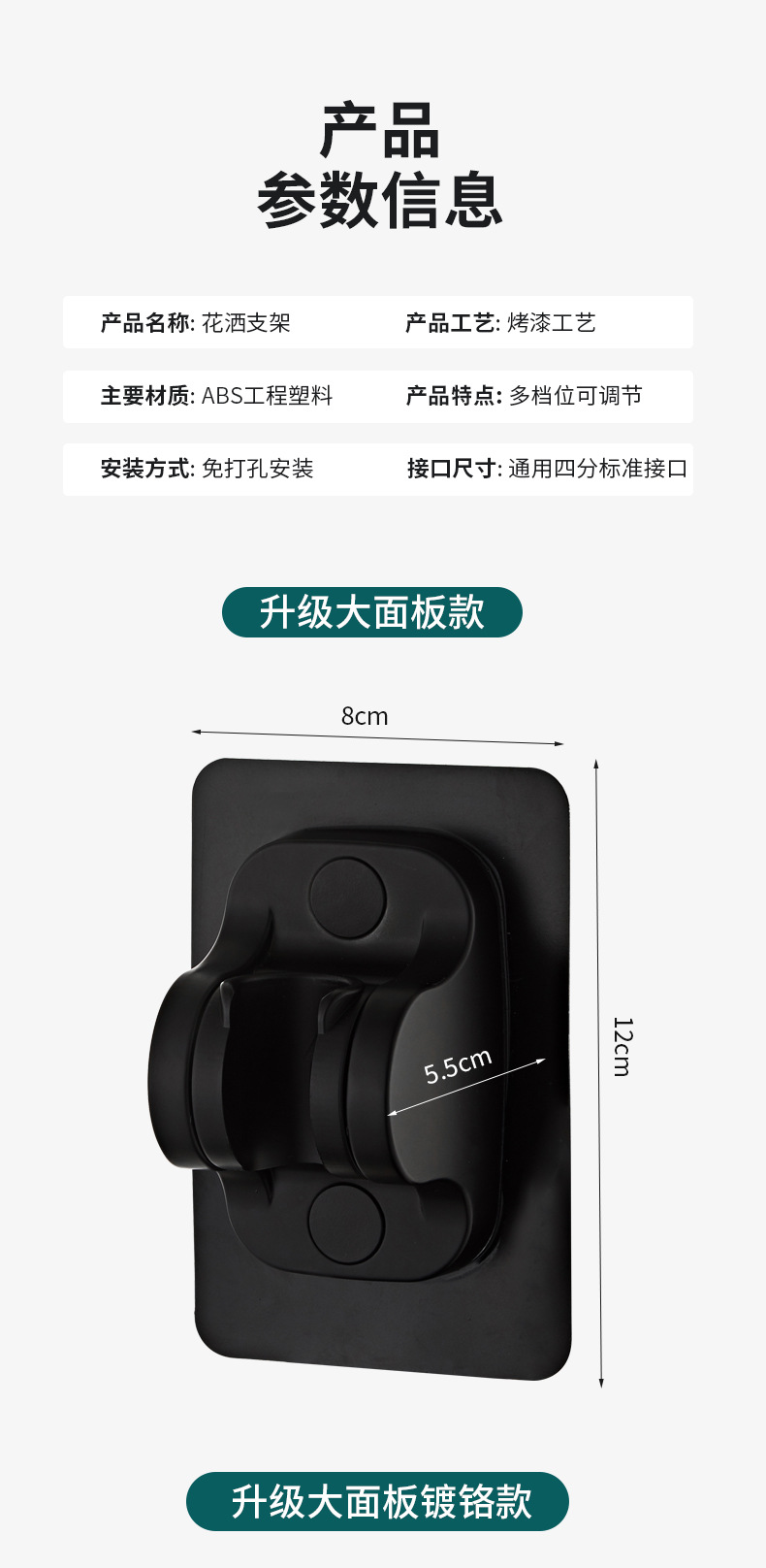 샤워 헤드 브래킷, 무타공 욕실 샤워 헤드, 조절 가능한 걸이식 샤워 헤드, 흔적 없는 액세서리, 범용 고정 베이스
