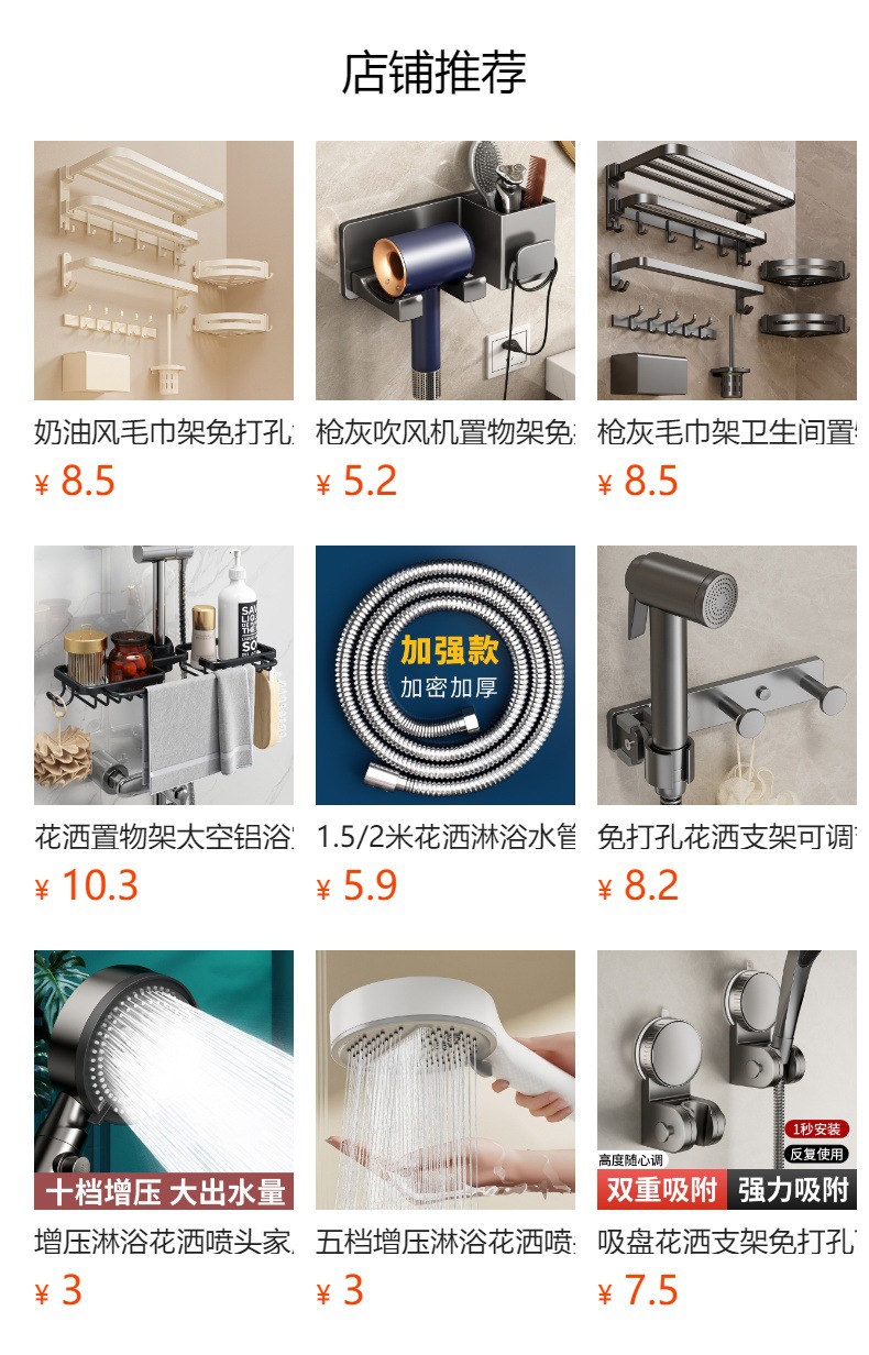 샤워 헤드 브래킷, 무타공 욕실 샤워 헤드, 조절 가능한 걸이식 샤워 헤드, 흔적 없는 액세서리, 범용 고정 베이스스토어 가기