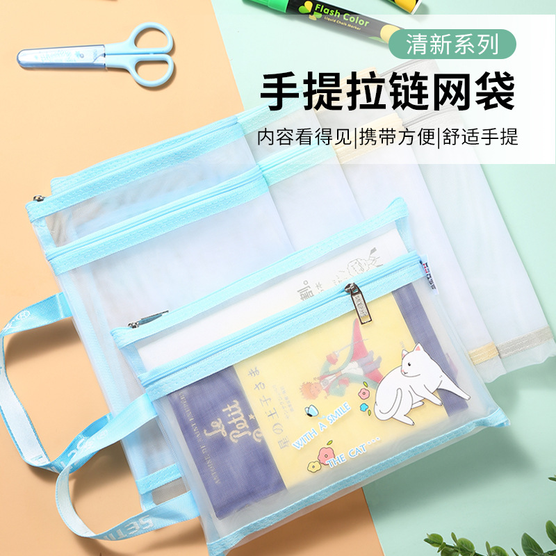 모리타 헤어 마카롱 컬러 모란디 컬러 만화 고양이 A4 파일 가방 투명 나일론 거즈 토트 백 보관 가방스토어 가기