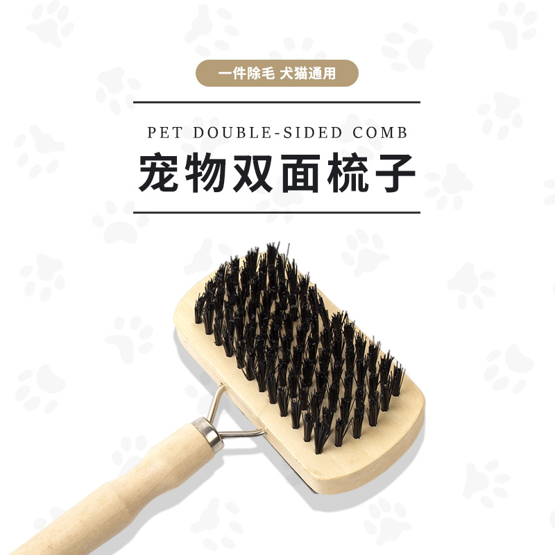 애완 동물 청소 미용 도구 나무 애완 동물 양면 브러시 나무 손잡이 바늘 빗 청소 미용 마사지 빗 재고 도매스토어 가기