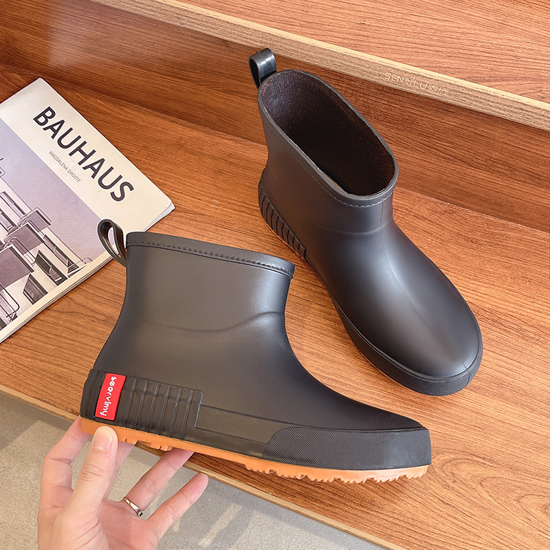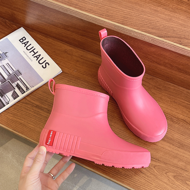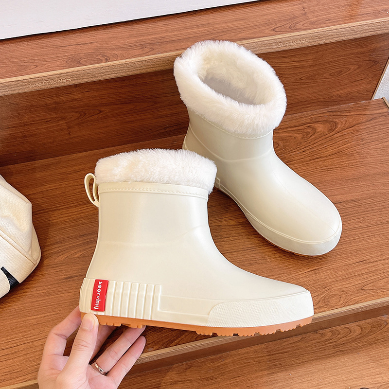 일본 비 신발 여성의 겨울 기모 패션 성인 물 신발 미끄럼 방지 짧은 튜브 고무 신발 크로스 국경 도매 따뜻한 눈 부츠