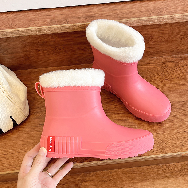 일본 비 신발 여성의 겨울 기모 패션 성인 물 신발 미끄럼 방지 짧은 튜브 고무 신발 크로스 국경 도매 따뜻한 눈 부츠스토어 가기