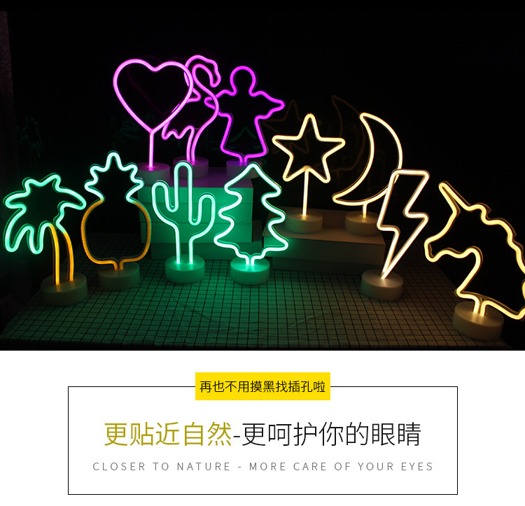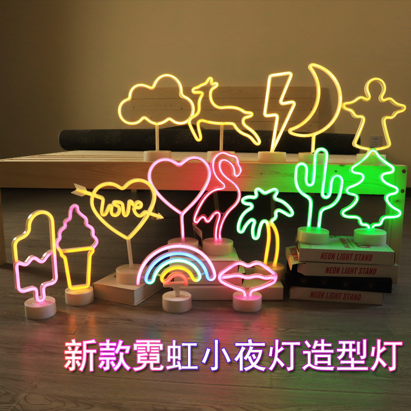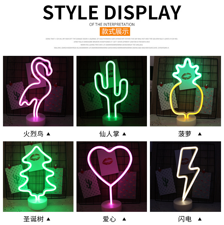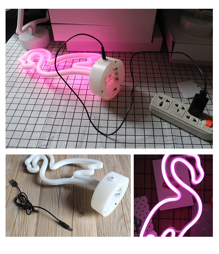 인 플라밍고 네온 led 야간 조명 데스크탑 크리 에이 티브 배터리 만화 야간 조명 문 스타 스타일 조명스토어 가기