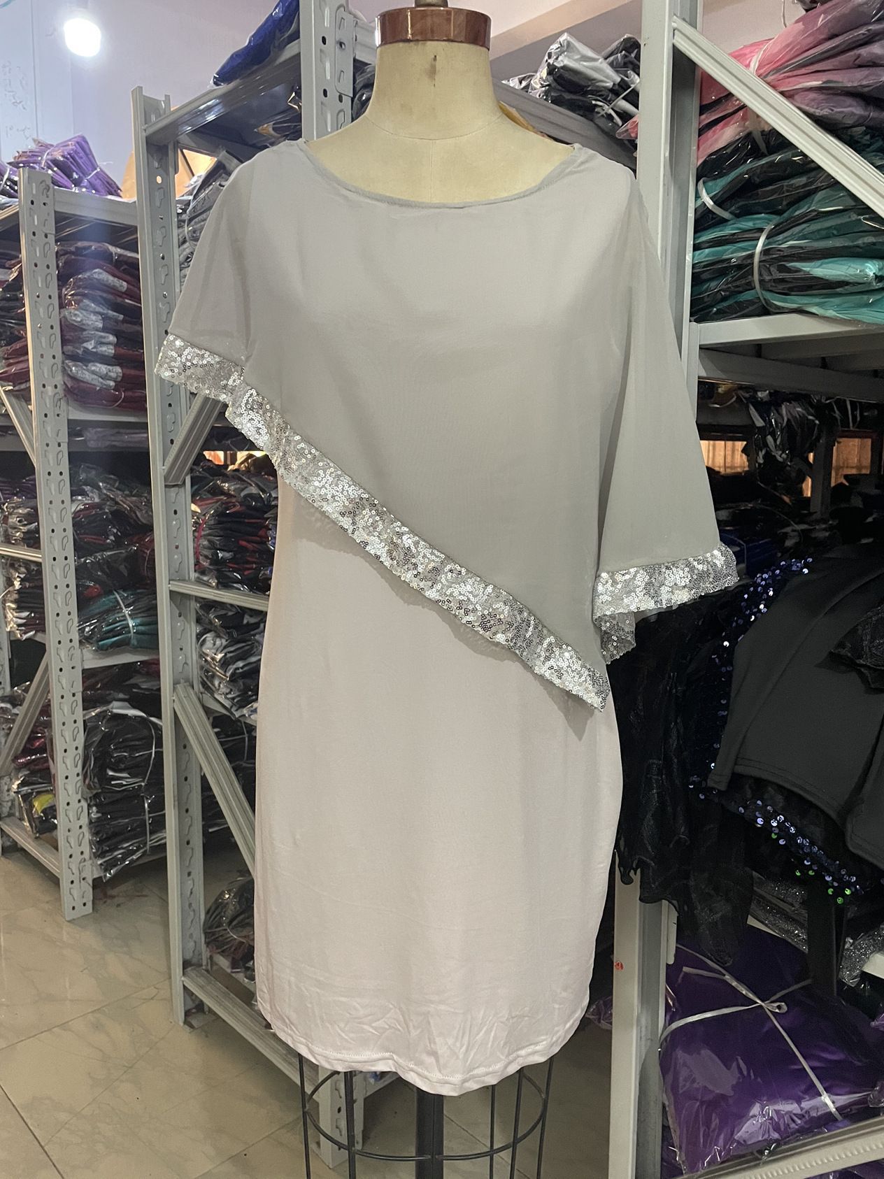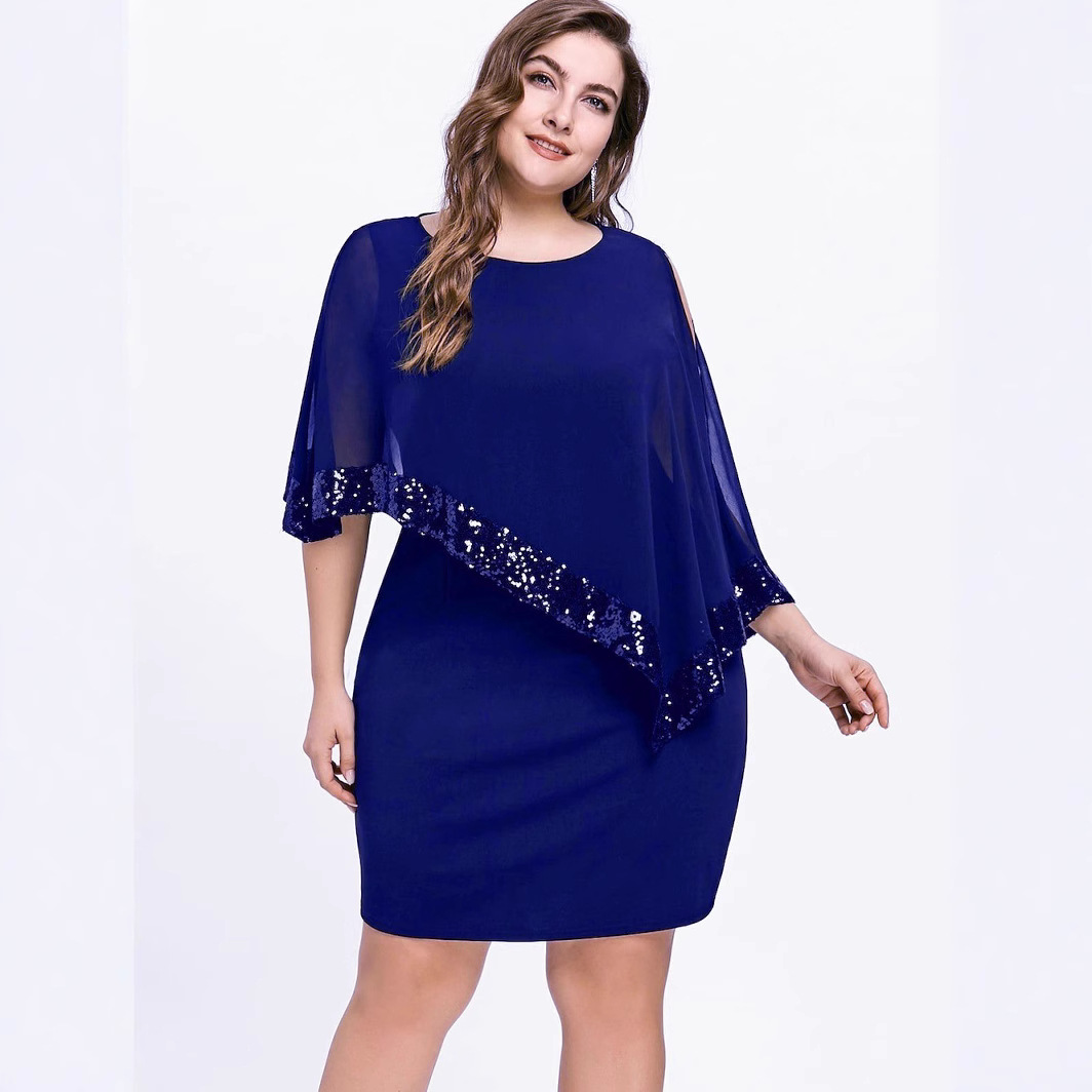 이베이 알리익스프레스 신상 불규칙 스팽글 스티치 플러스 사이즈 여성 드레스 8가지 색상 8가지 사이즈