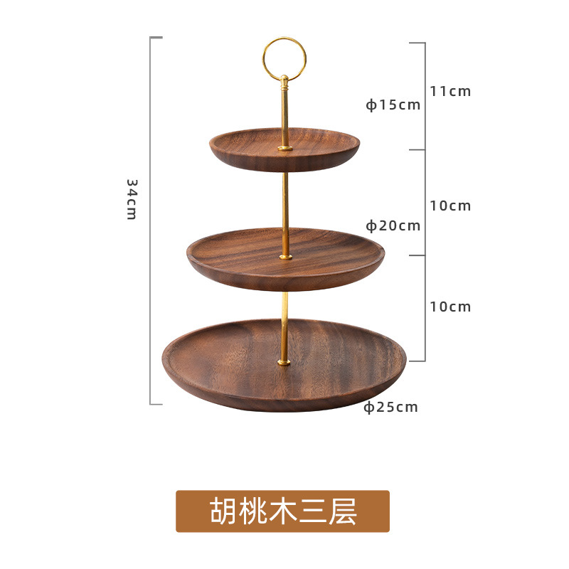 스탠딩 엔드 유럽 스타일 블랙 호두 다층 캔디 트레이 단단한 나무 디스플레이 트레이 호두 3 층 말린 과일 케이크 트레이스토어 가기