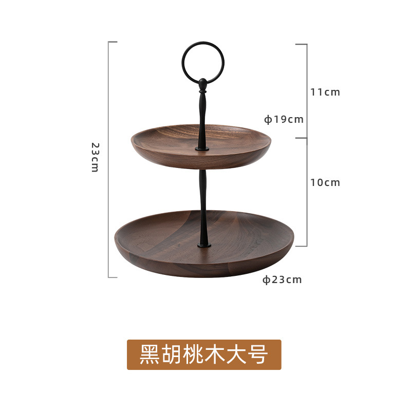 스탠딩 엔드 유럽 스타일 블랙 호두 다층 캔디 트레이 단단한 나무 디스플레이 트레이 호두 3 층 말린 과일 케이크 트레이