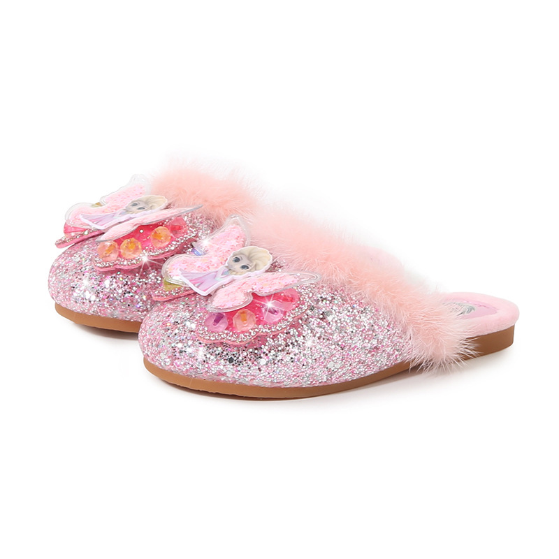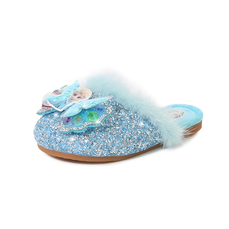 어린이용 겨울 신상품 플러스 벨벳 보온 슬리퍼 여자 아이들용 엘사 공주 슬리퍼 미끄럼 방지