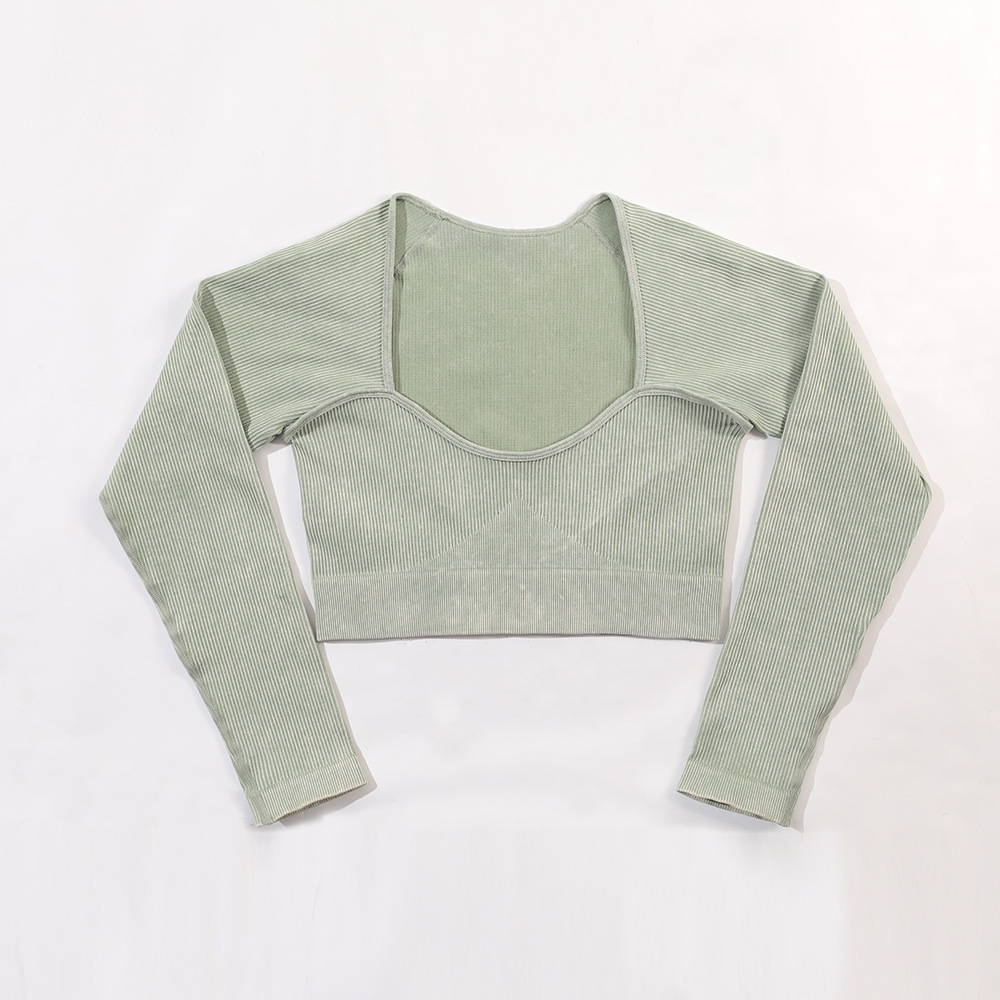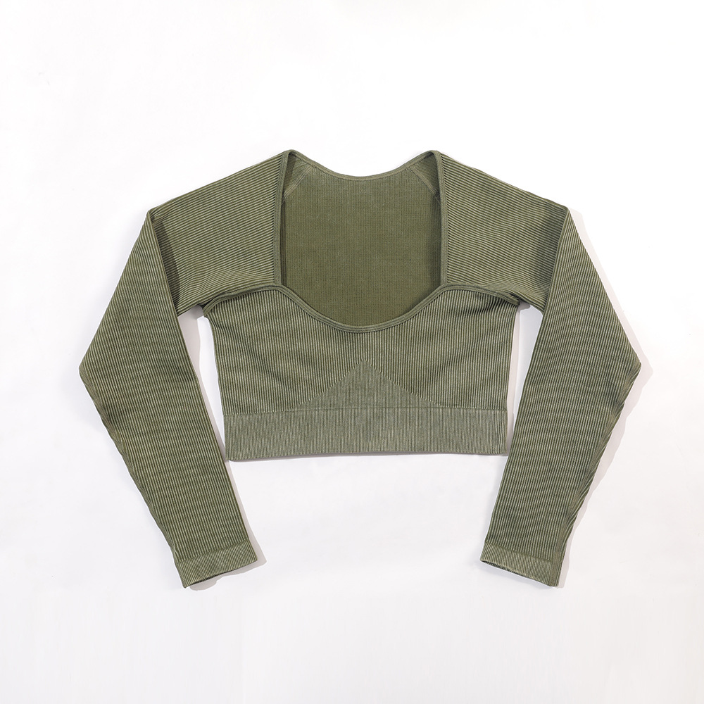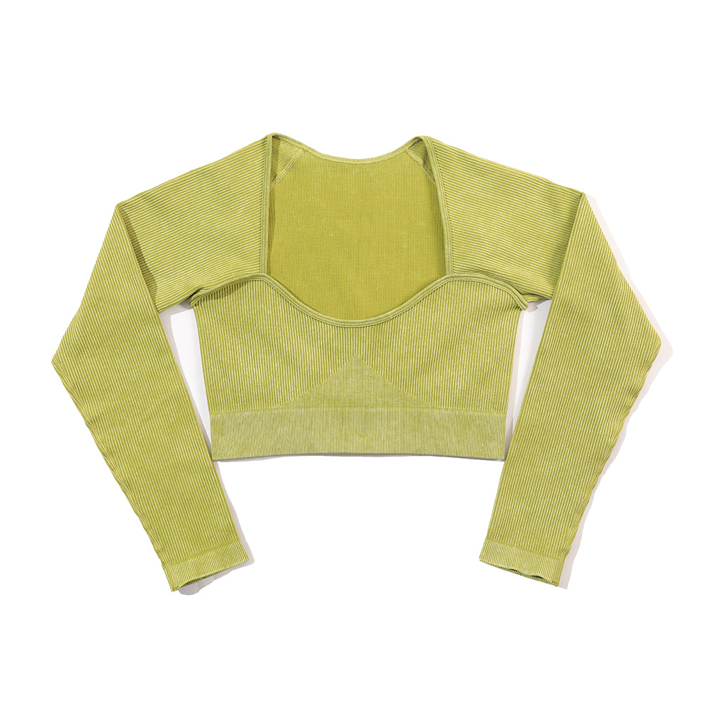 공장 재고 INS 크로스-국경 새로운 도착 모래 세척 원활한 요가 세트 여자의 긴 소매 스포츠 피트니스 세트 하이 웨이스트 엉덩이 바지스토어 가기