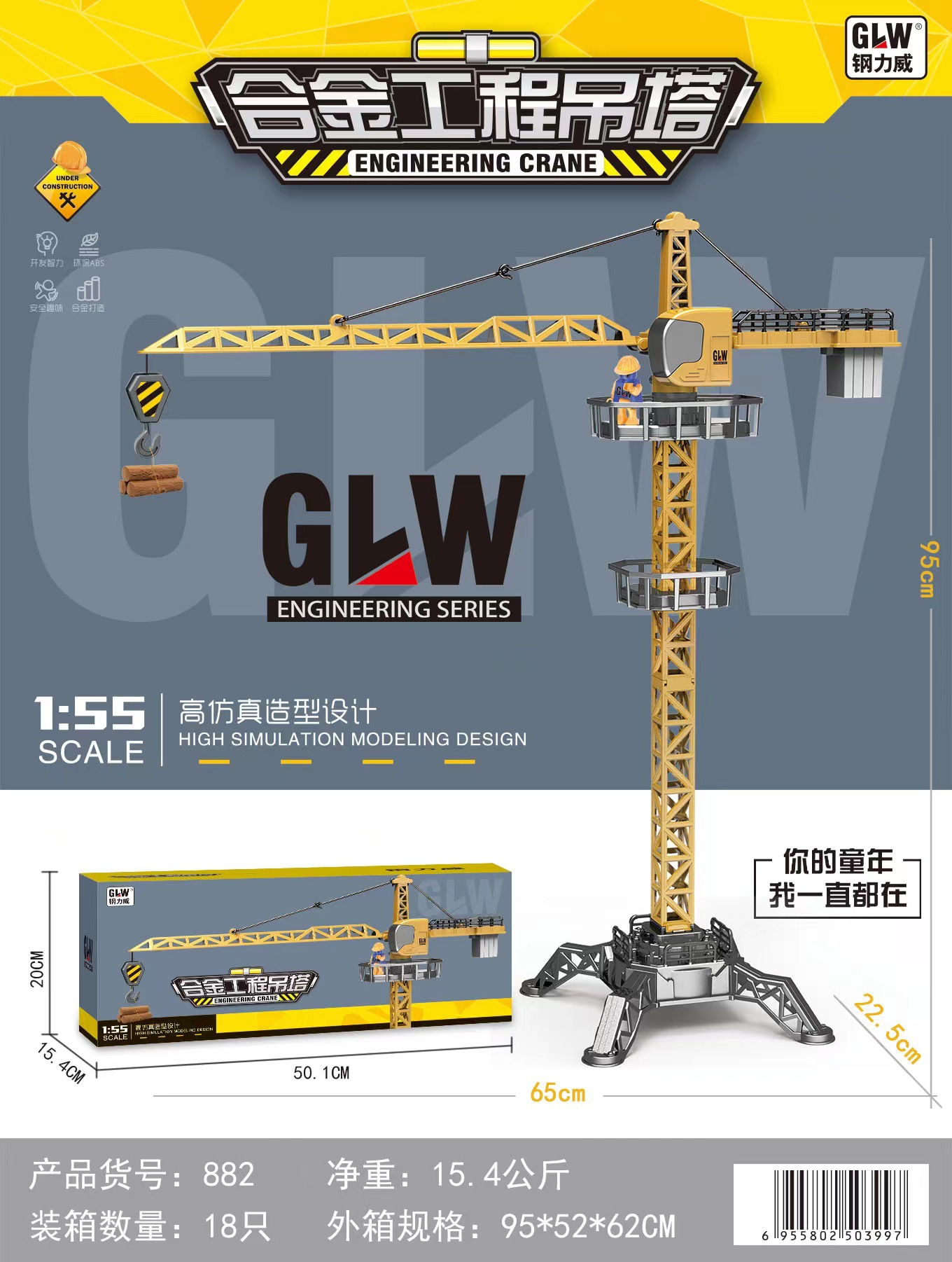 강력한 합금 95cm 대형 타워형 시뮬레이션 엔지니어링 차량 타워형 중력 크레인 장난감 크로스보더 대형