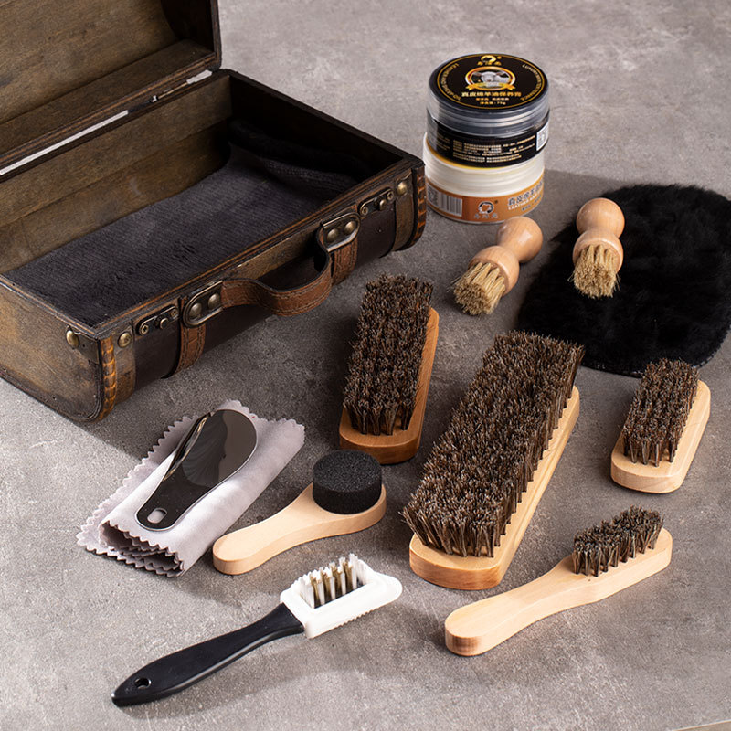 레트로 가죽 케이스 16 PC 말 머리 브러시 신발 브러시 오일 브러시 강모 브러시 안티 스웨이드 회전 가죽 신발 청소 브러시 신발스토어 가기