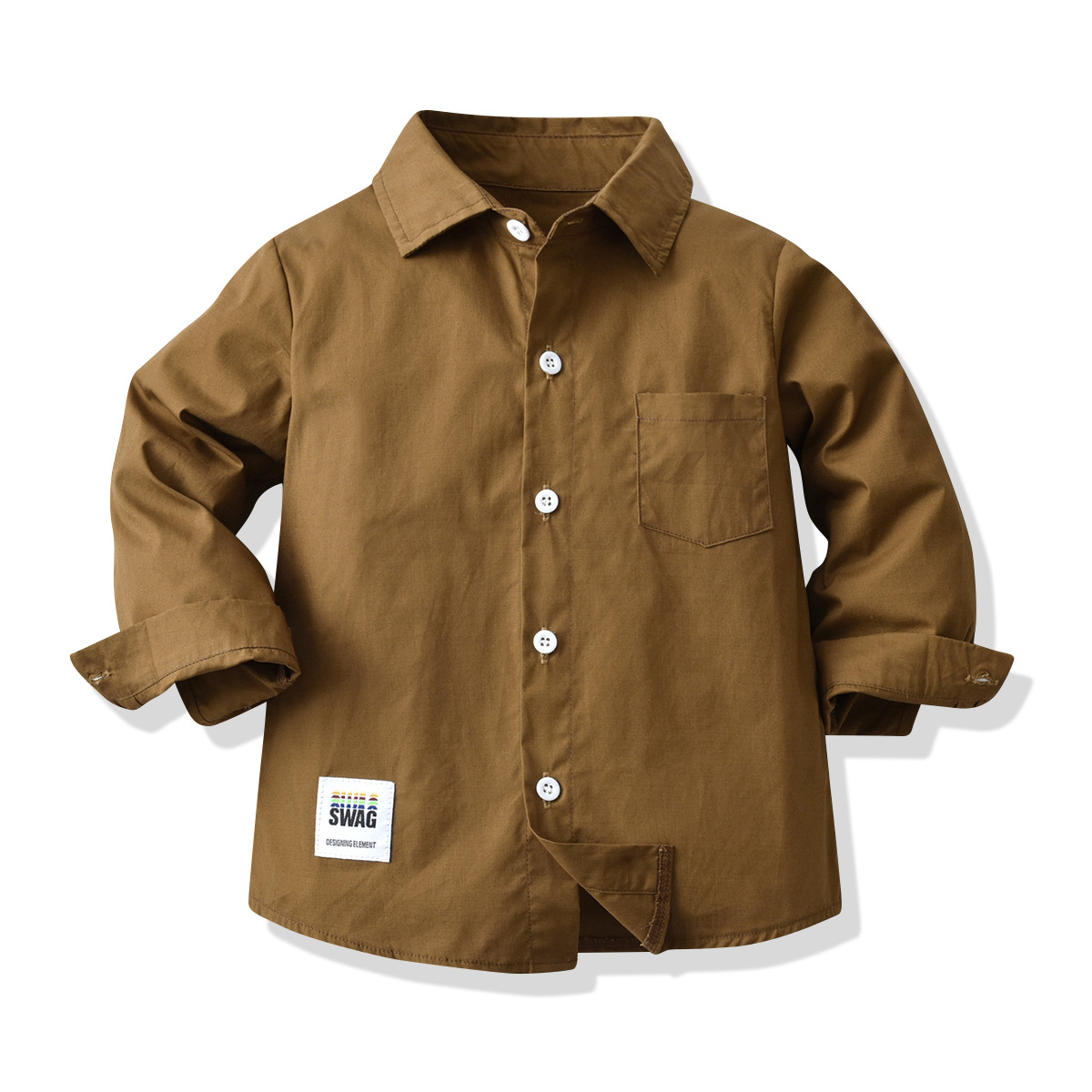 크로스 보더 새로운 CUHK 어린이 봄과 가을 긴 소매 다크 브라운 셔츠 아동면 셔츠 소년의 유럽과 미국의 긴 소매 기본 셔츠