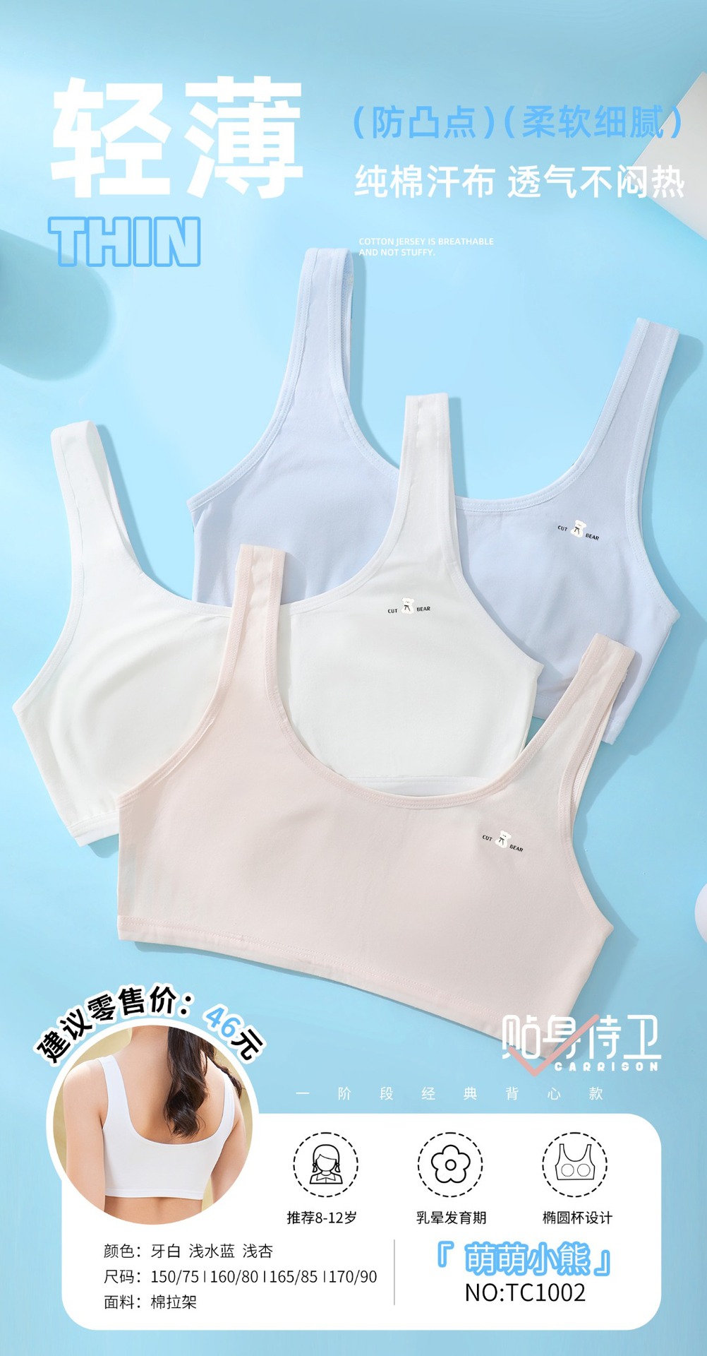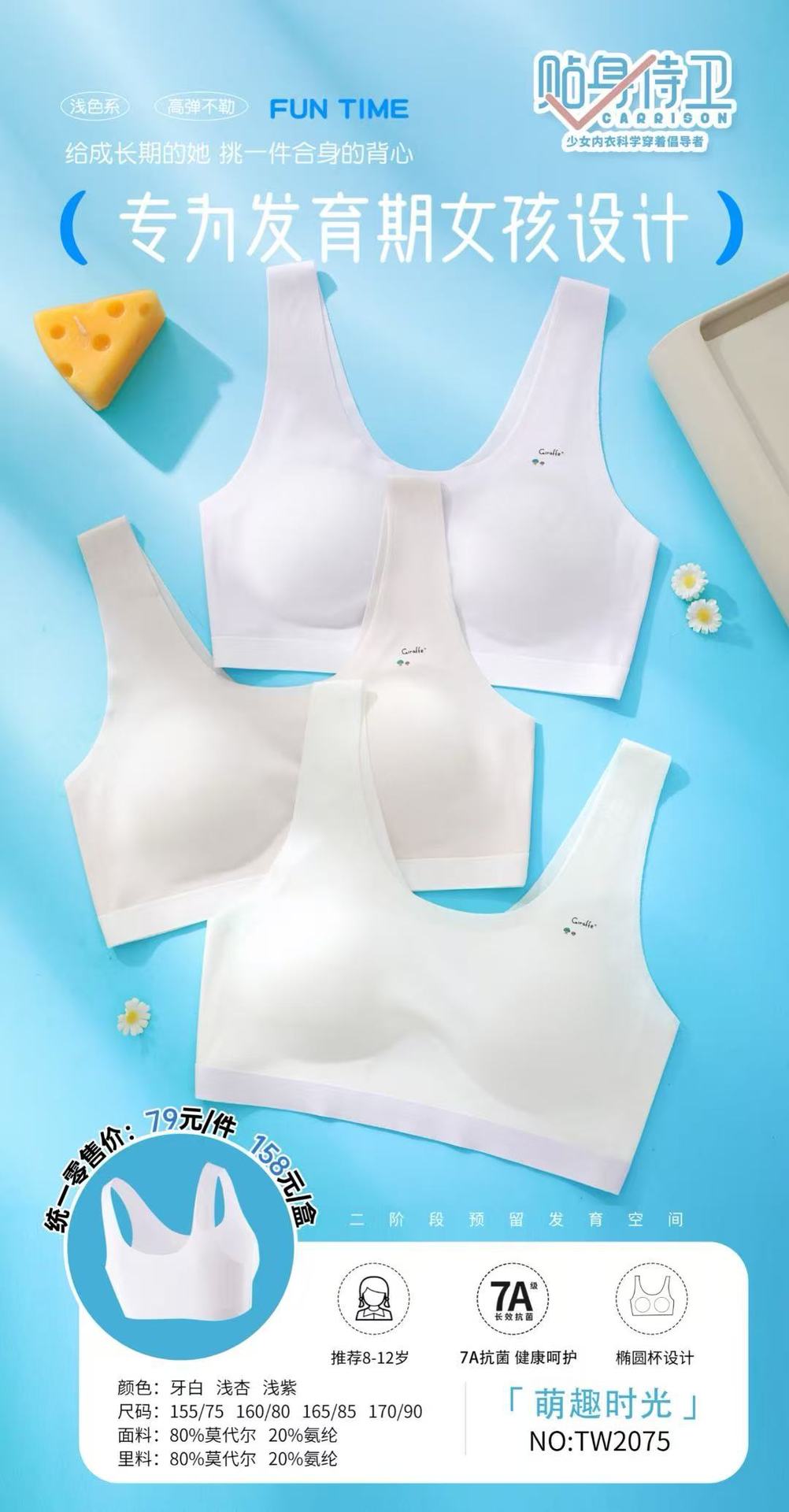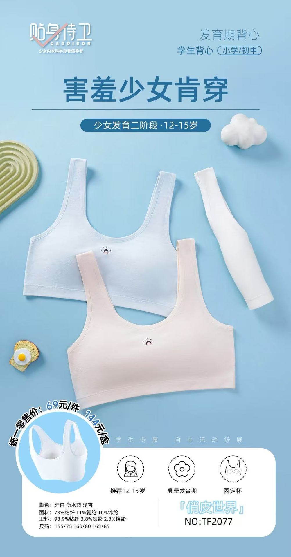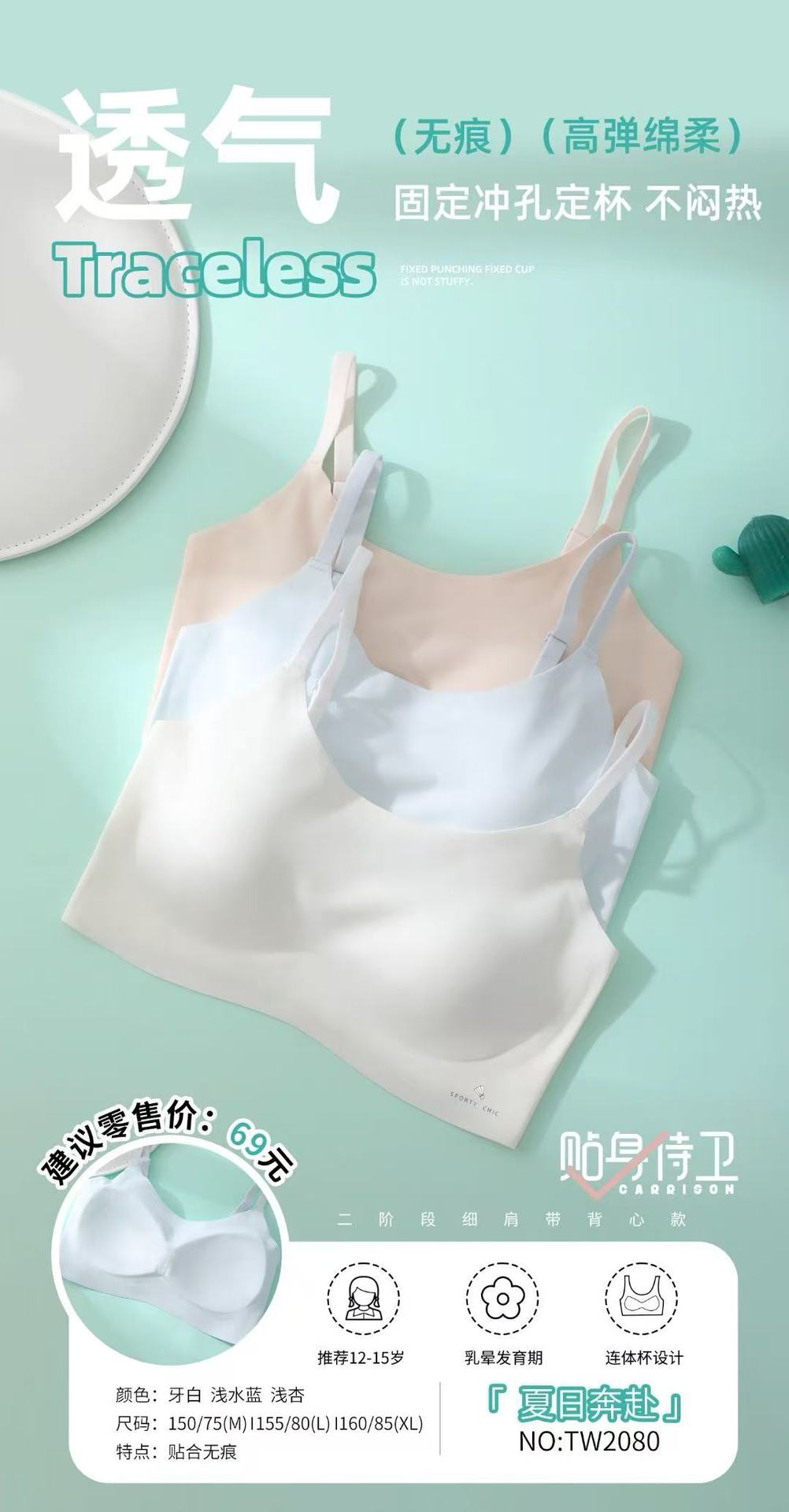 흔적 없는 여자 속옷 학생 중학생 소형 조끼 8-16 세 발달 고정 컵스토어 가기