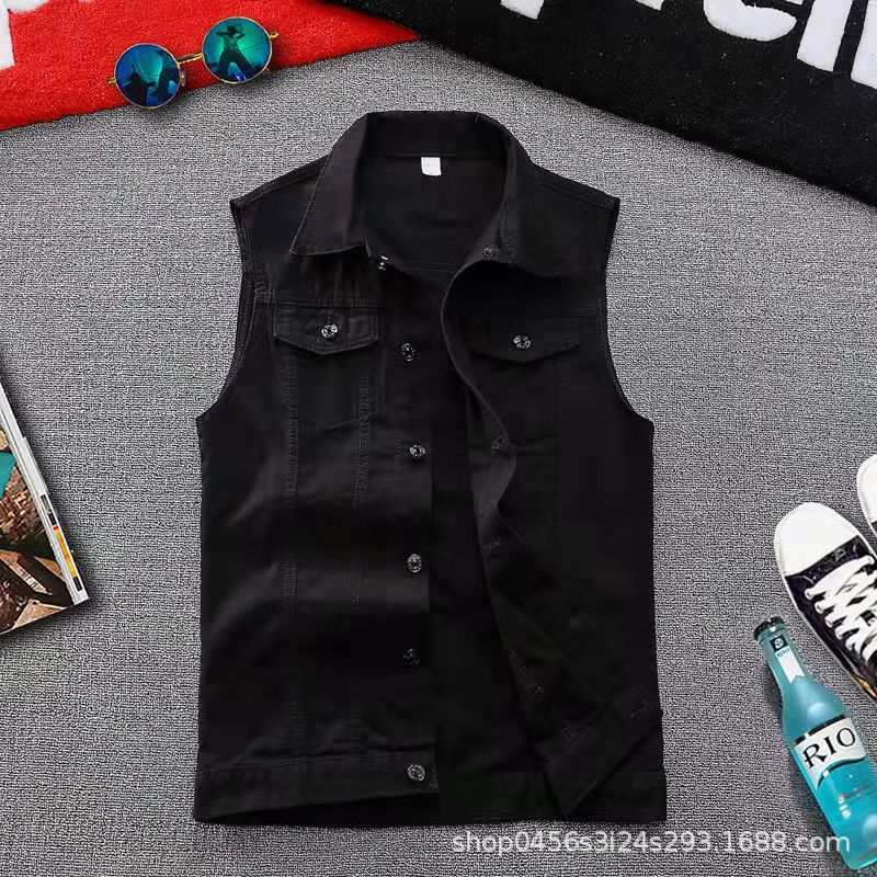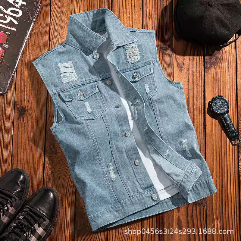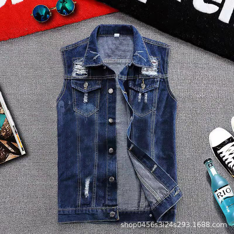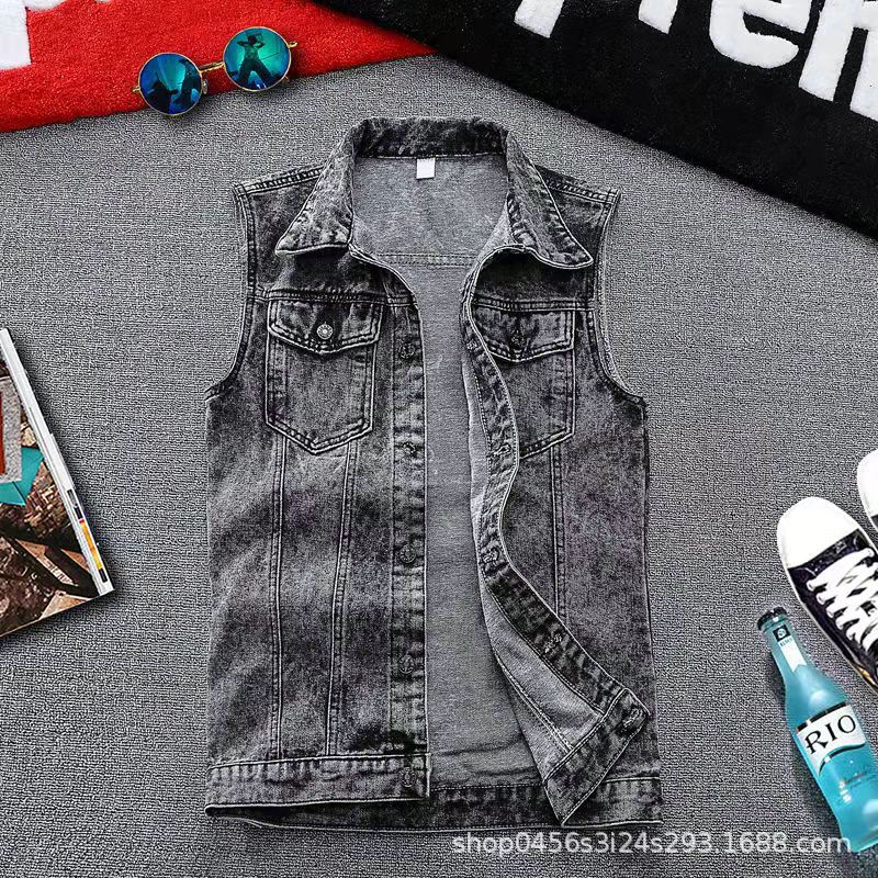 홍콩 스타일 빈티지 데님 조끼 남자의 청소년 느슨한 캐주얼 하이 스트리트 패션 브랜드 민소매 조끼 재킷