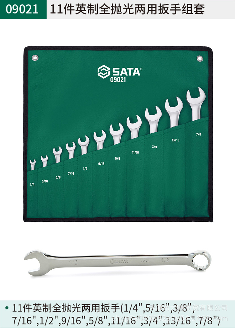 • 09021 11 인치 완전 광택 이중 목적 렌치 세트