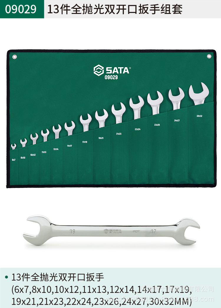• 09029 13 피스 완전 광택 더블 오픈 엔드 렌치 세트