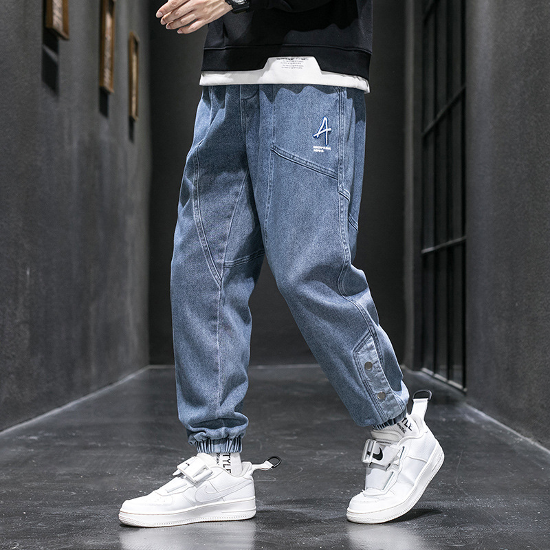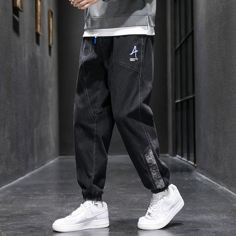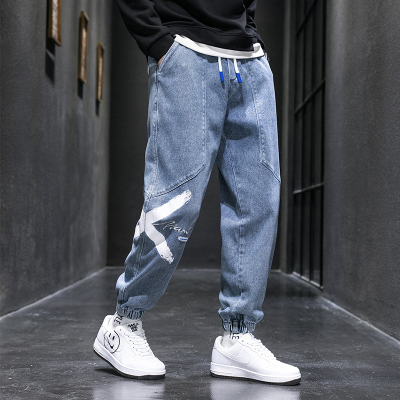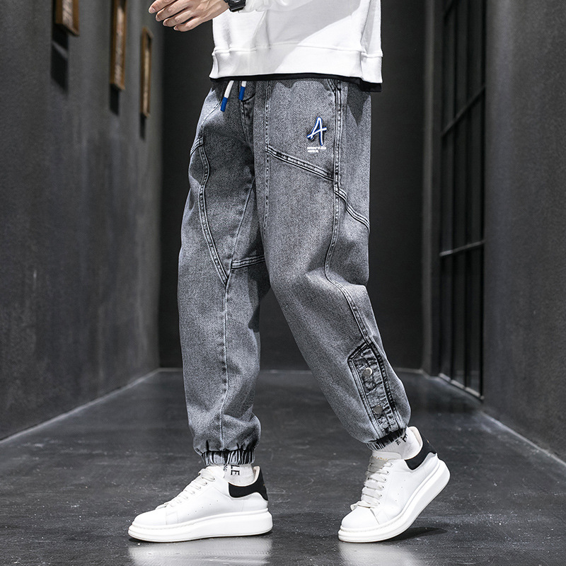 여름 플러스 사이즈 느슨한 청바지 남자의 뚱뚱한 사람들의 발 타이 업 플러스 사이즈 뚱뚱한 남자 뚱뚱한 소년 여름 패션 하렘 바지스토어 가기