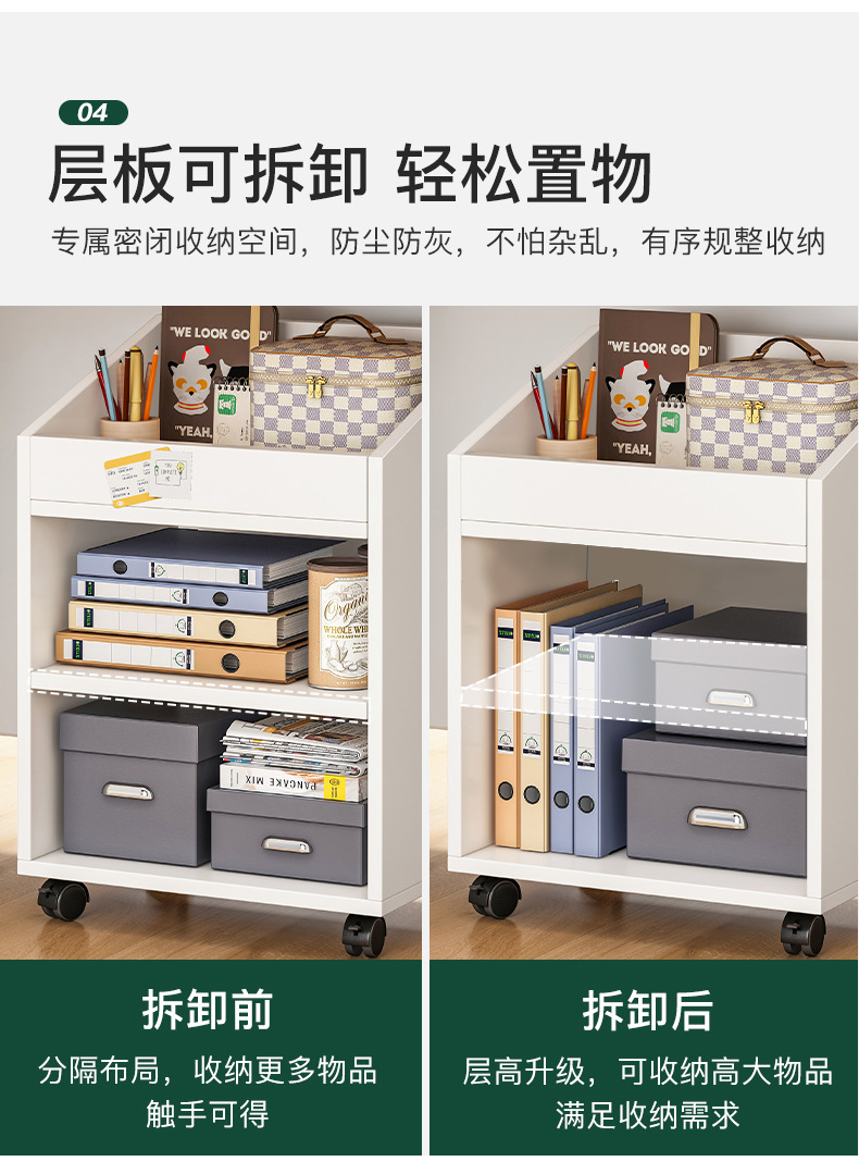 책가방 수납 랙 바퀴가 달린 이동식 소형 책장 테이블 보관 캐비닛 아래 사무실 보관 유물 보관 캐비닛스토어 가기