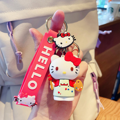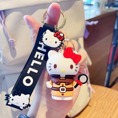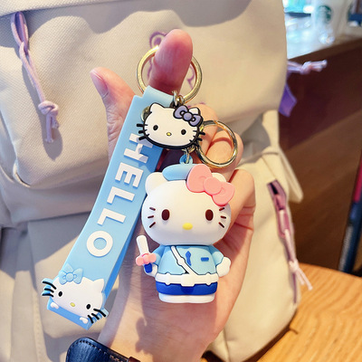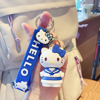 새로운 만화 실리콘 kt 고양이 열쇠 고리 귀여운 커플 활 kt 고양이 자동차 가방 펜던트 작은 선물