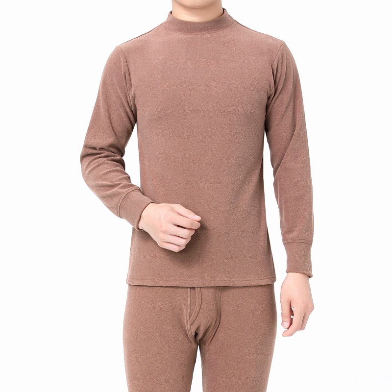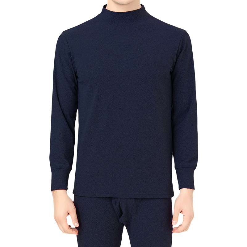 자체 발열 양면 벨벳 열 속옷 세트 남성용 기모 두꺼운 중간 높이 칼라 방한 겨울 가을 의류 및 바지스토어 가기