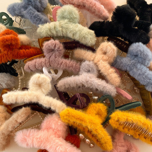 网红秋冬毛绒抓夹ins马卡龙色发夹女韩国 气质盘发鲨鱼夹现货批发