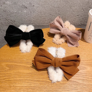 毛绒蝴蝶结抓夹秋冬咖色系气质发夹后脑勺盘发鲨鱼夹网红新款夹子